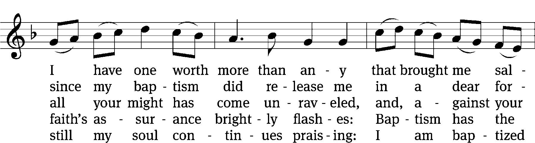 God saved us through the washing of rebirth and renewal by the Holy Spirit and united us to the death and resurrection of Jesus. Every day God forgives your sins, removes your guilt, and strengthens you to defeat Satan’s power. His promise is for you and your children, and he will never forsake you. Your sins are forgiven. You are clothed with Christ. You are at peace with God now and forever. Amen.