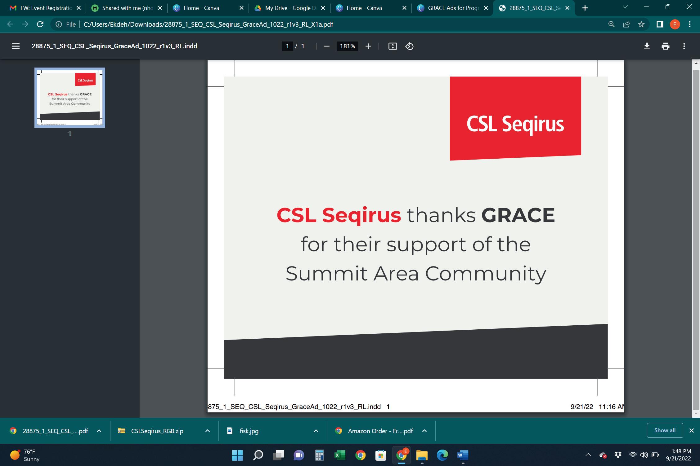She serves as a trusted community resource to share information about GRACE, to connect people in need, and to offer meaningful employment.