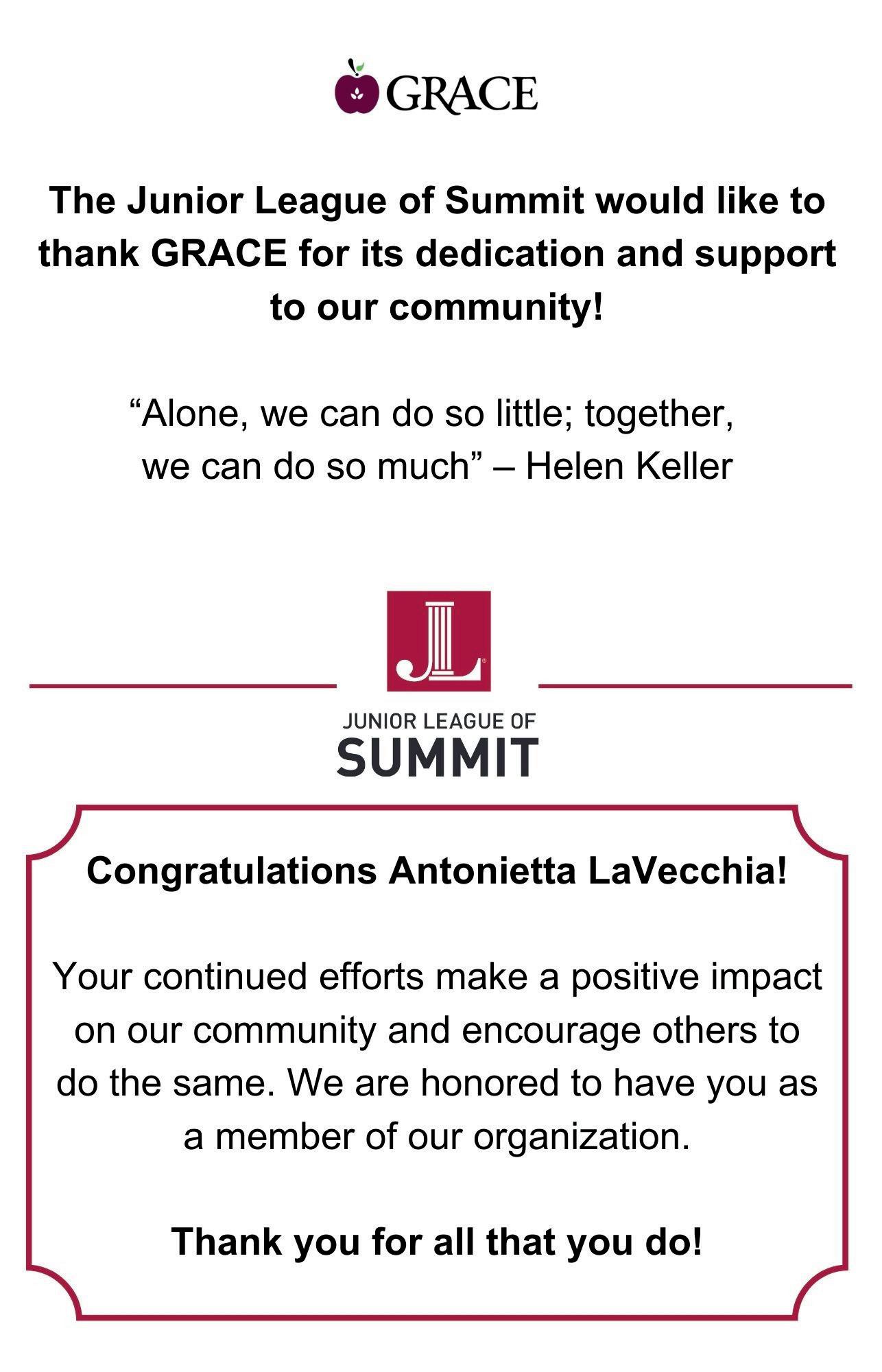 Congratulations Antonietta! Thank you for all you do. We love and appreciate you.