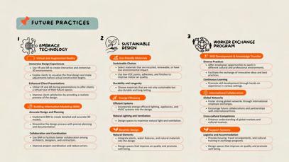 This assignment sets the scenario for students to to re-imagine and reconceptualize the ideal architectural practice of the future. Participants are encouraged to consider various challenges often faced by architects/designers and propose solutions, and innovative business models.
