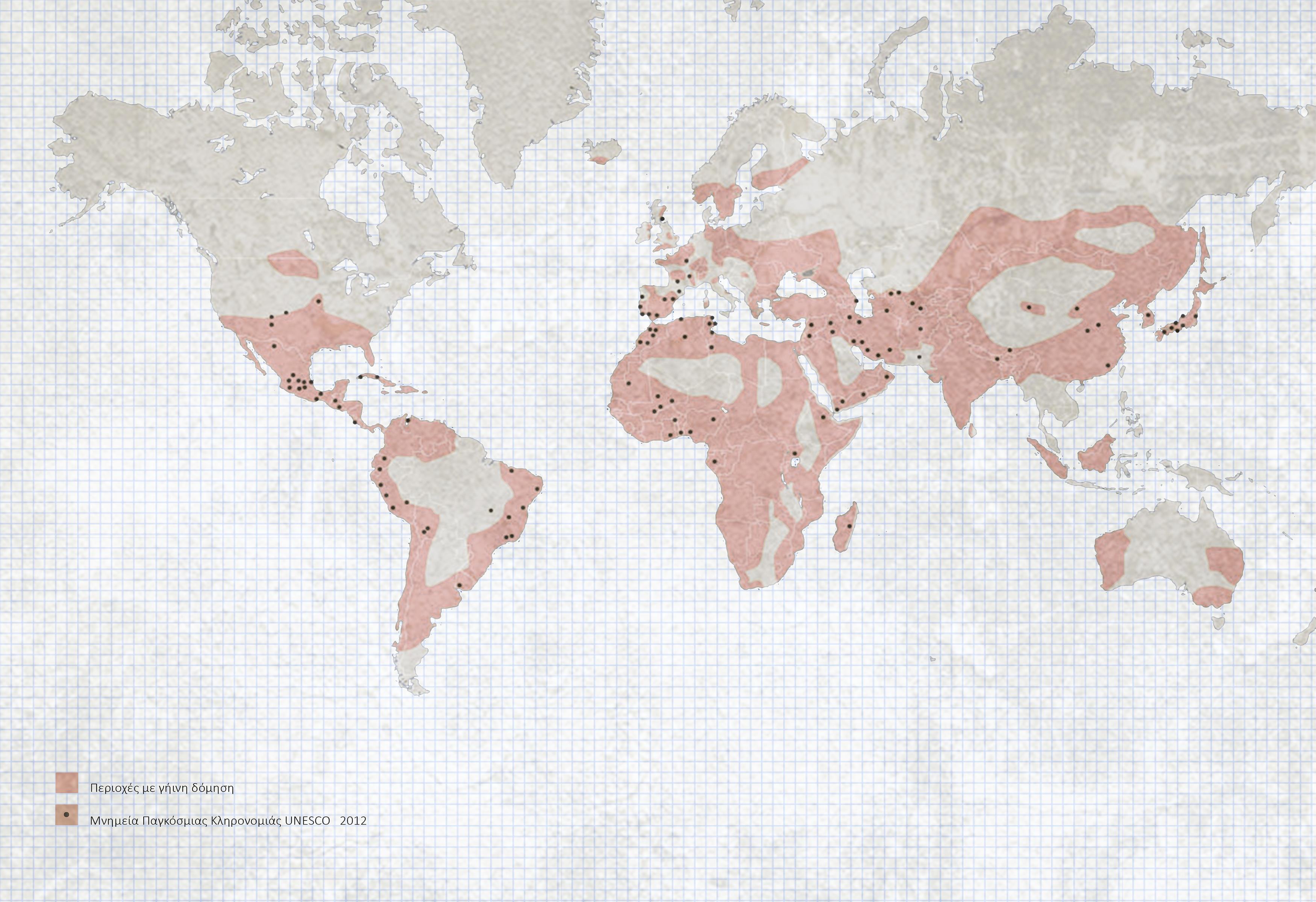 Εικόνα 06: World map illustrating the worldwide use of earth construction, CRAterre/ ENSAG, 2012 (file:///C:/Users/Hp%20User/Downloads/craterre_2013_07_presentationchaireeng_hgbrmc% 20.pdf)
