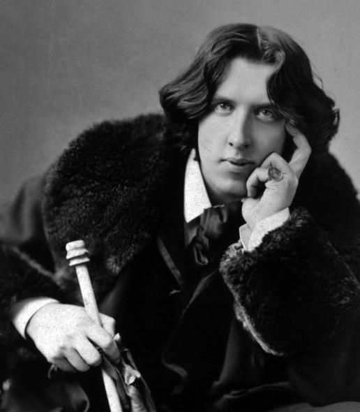 • Oscar Wilde, three-quarter length portrait, facing front, seated, leaning forward, left elbow resting on knee, hand to chin, holding walking stick in right hand, wearing coat. Portrait by Napoleon Sarony. Oscar Wilde. Wikipedia. wikipedia.org
