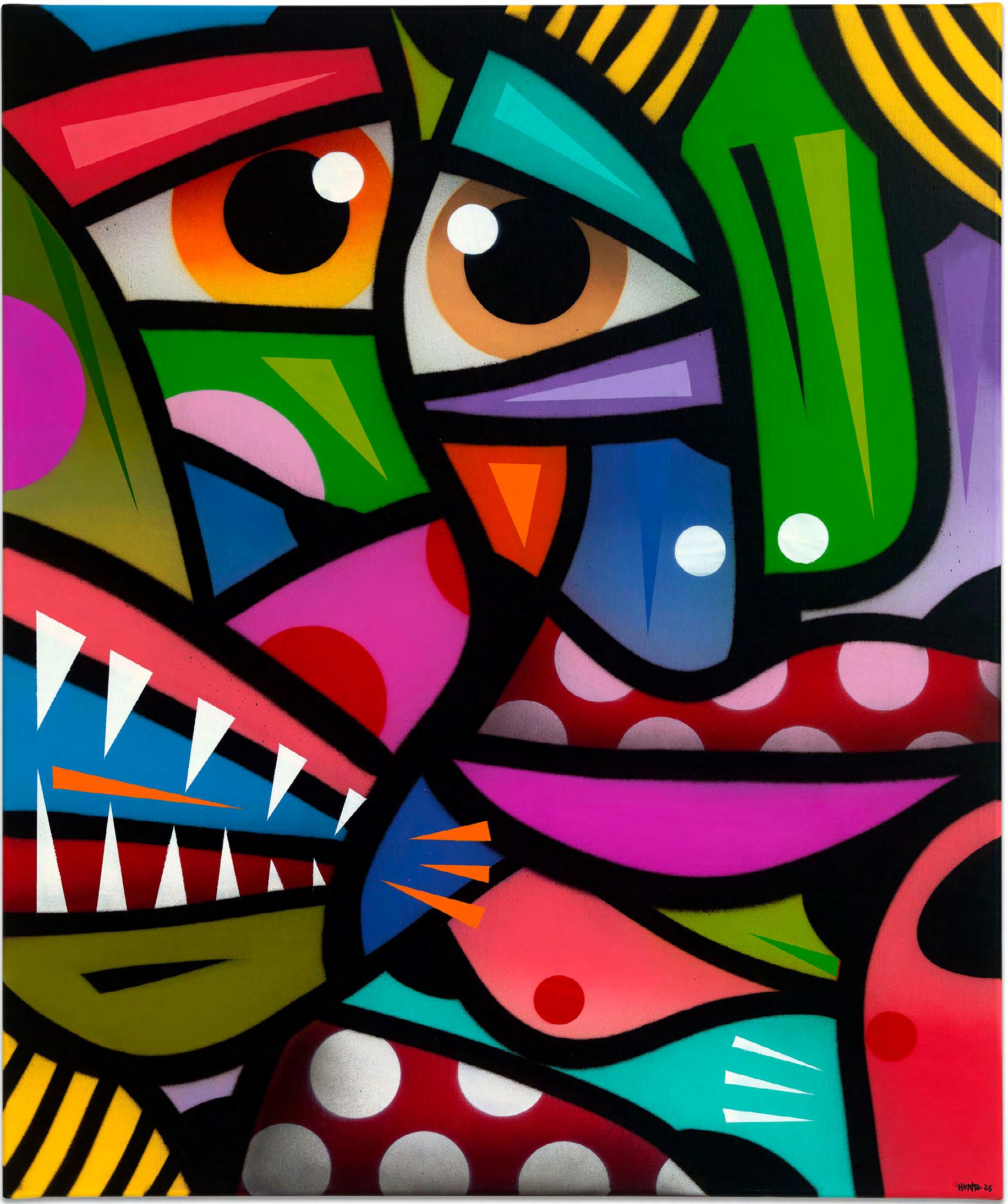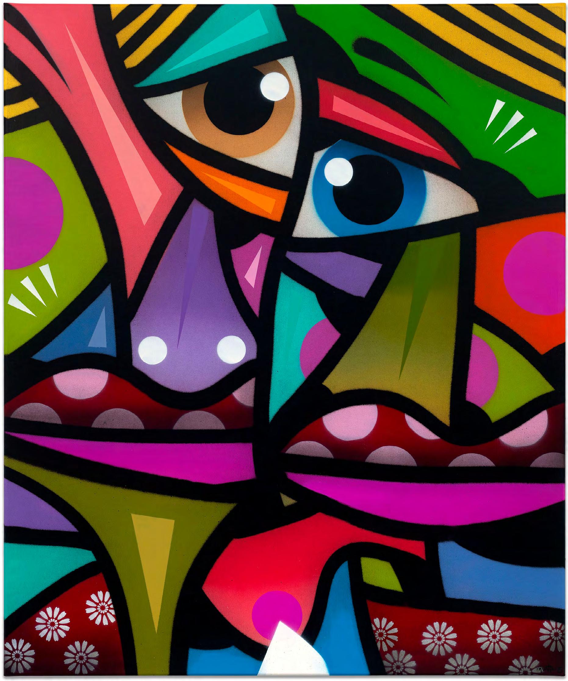 £2,750 Renato Hunto brings his signature street technique to the canvas, using spray paint to explore the intricate themes of love and sex. The vibrant, abstract forms are charged with raw emotion, each colour and curve representing the dynamic forces of passion, desire, and intimacy. Hunto brings bold use of spray paint - so familiar from his urban interventions - and infuses the canvas with a sense of spontaneity and urgency, creating a visual language that speaks to the fleeting yet powerful nature of human connection. The piece balances the beauty of love with its complexities, using contrasts and fluid shapes to evoke both the fragility and strength of intimacy. Hunto merges the energy of the street with a deeply personal exploration of human emotion.