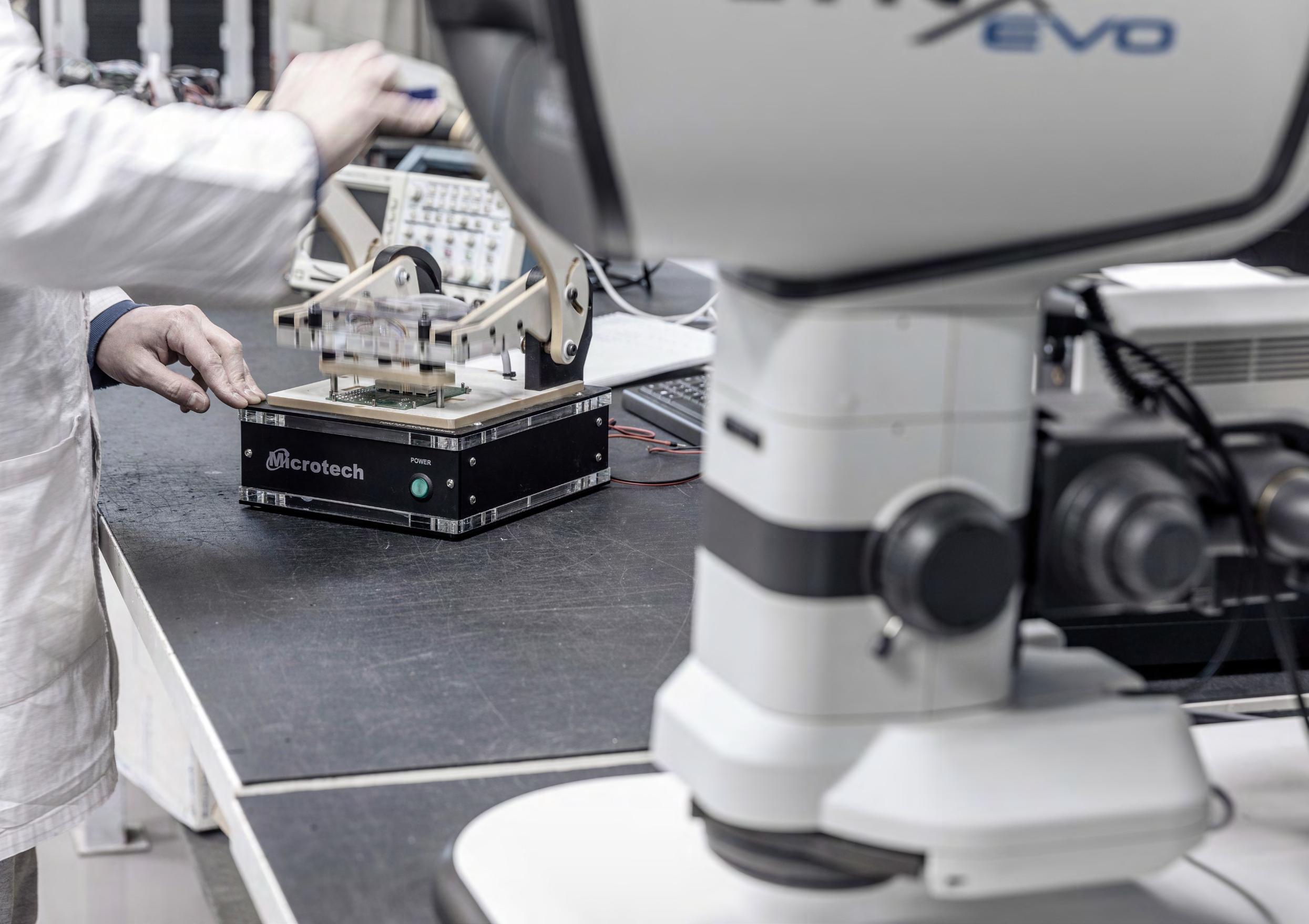 Stereomicroscopi per l’ispezione ottica delle schede.
