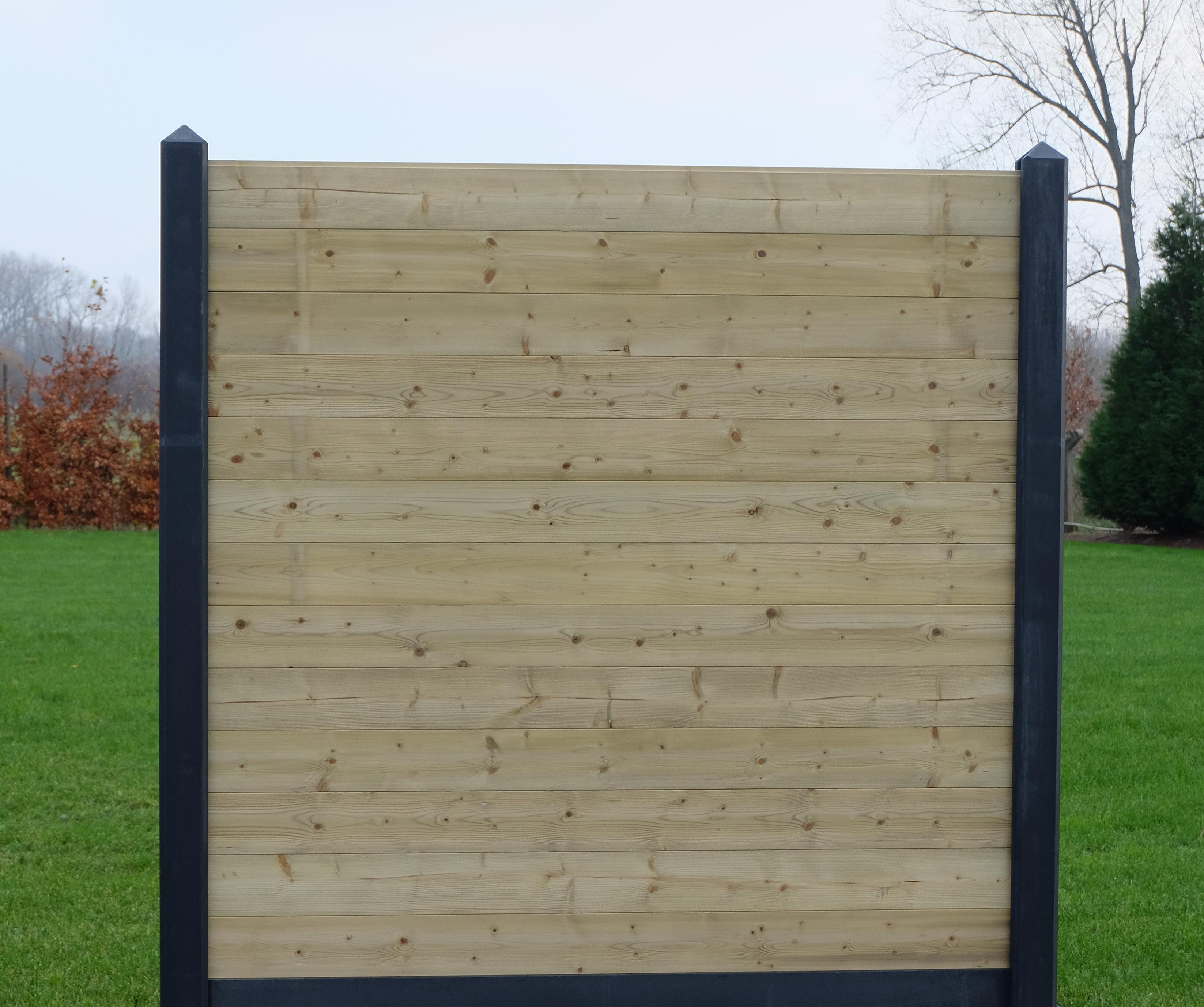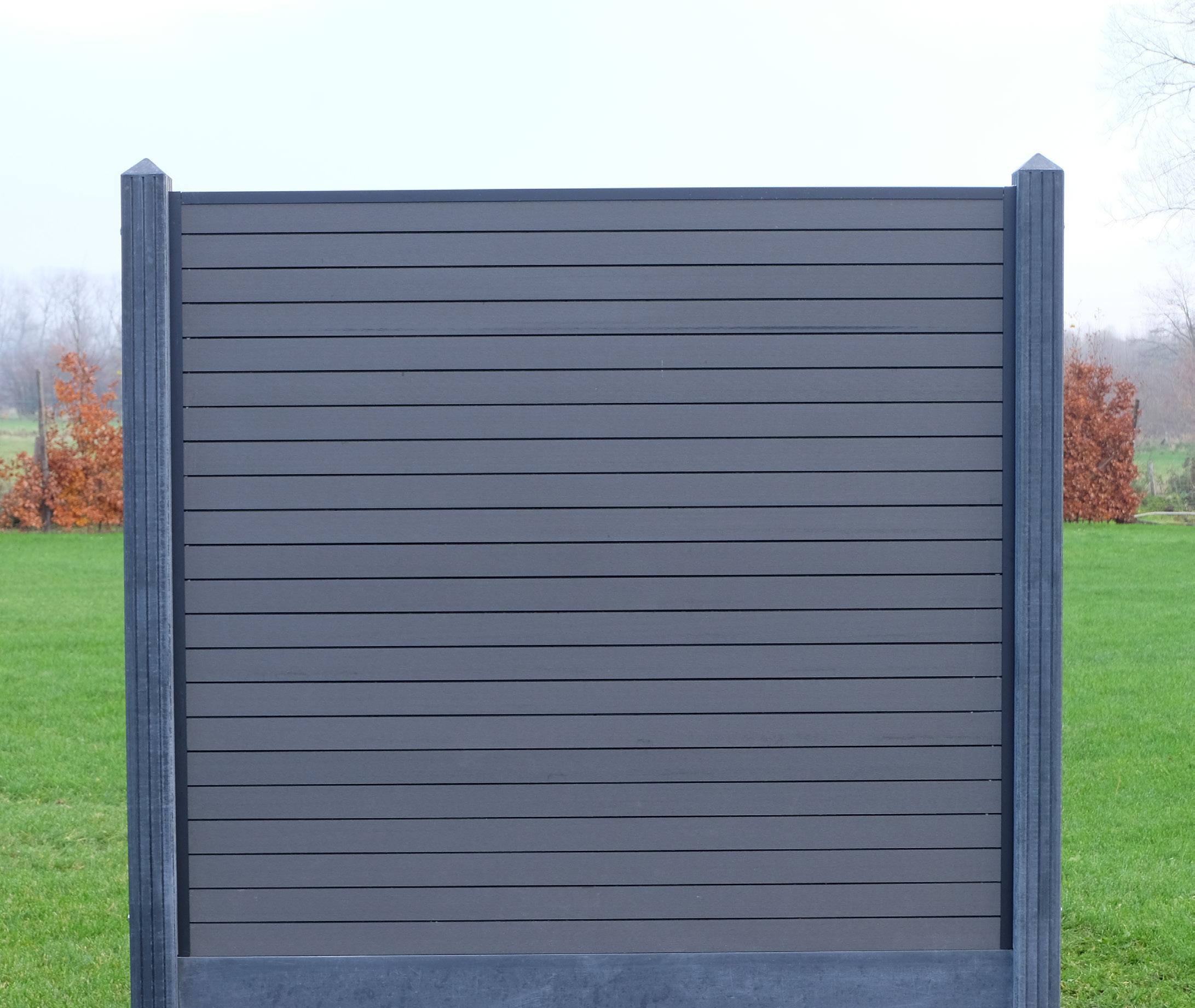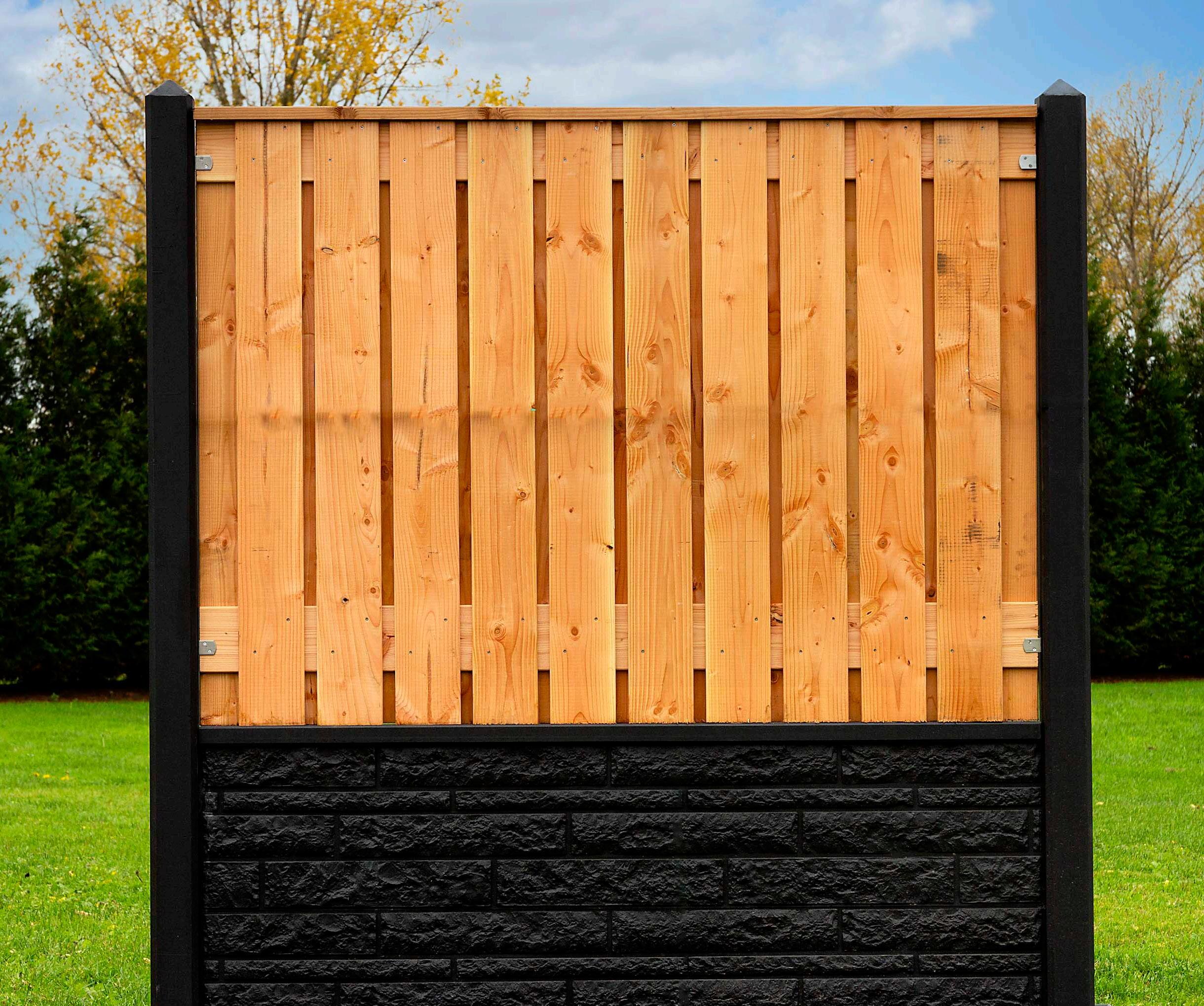 Betonpaal vlakke kop met afdekpet — Vlakke betonplaten in combinatie met een deel PVC planken