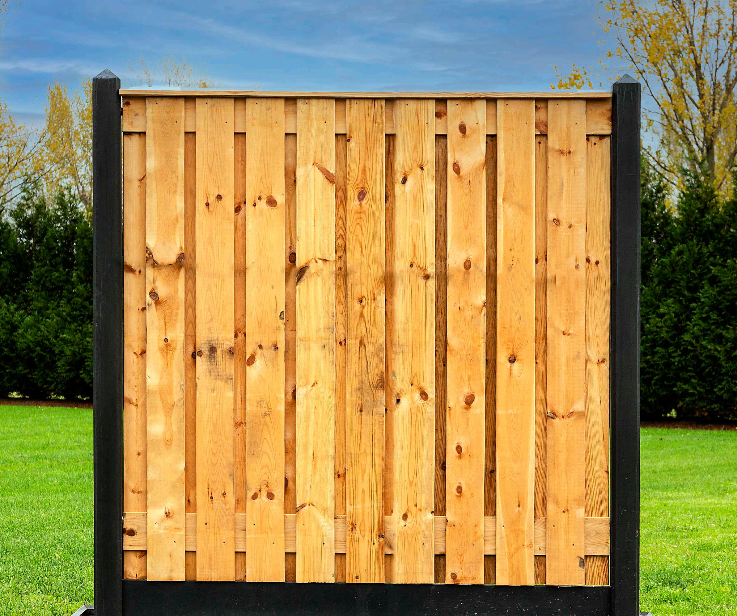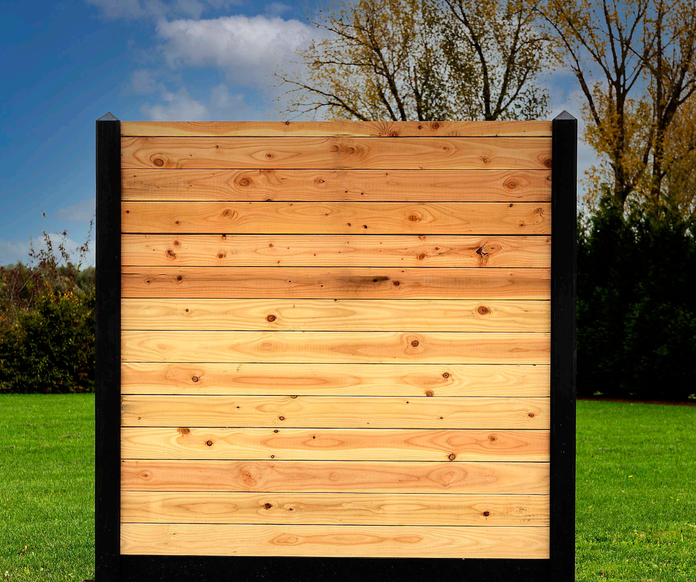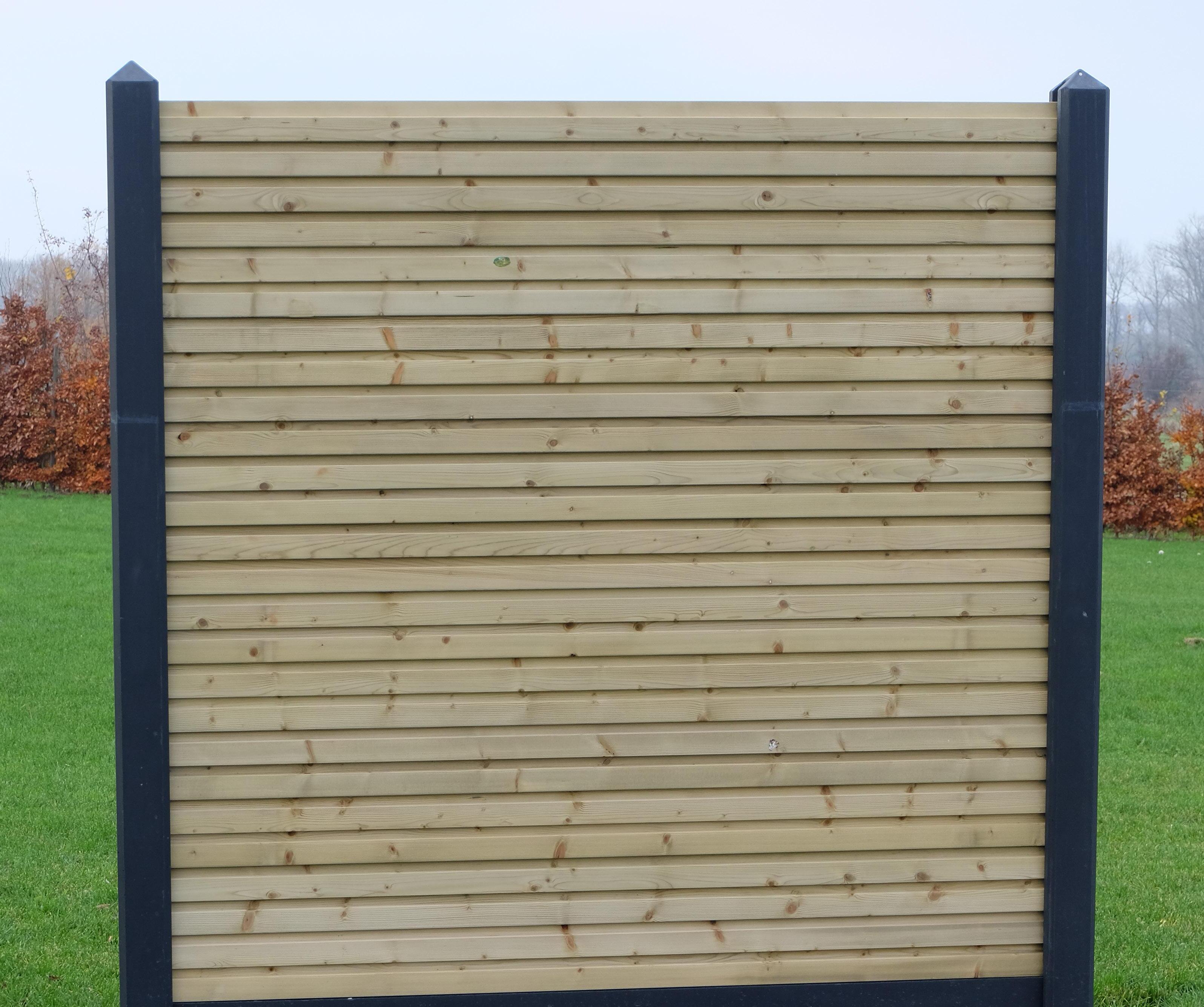 Betonpaal vlakke kop met afdekpet — Vlakke betonplaten in combinatie met een deel PVC planken