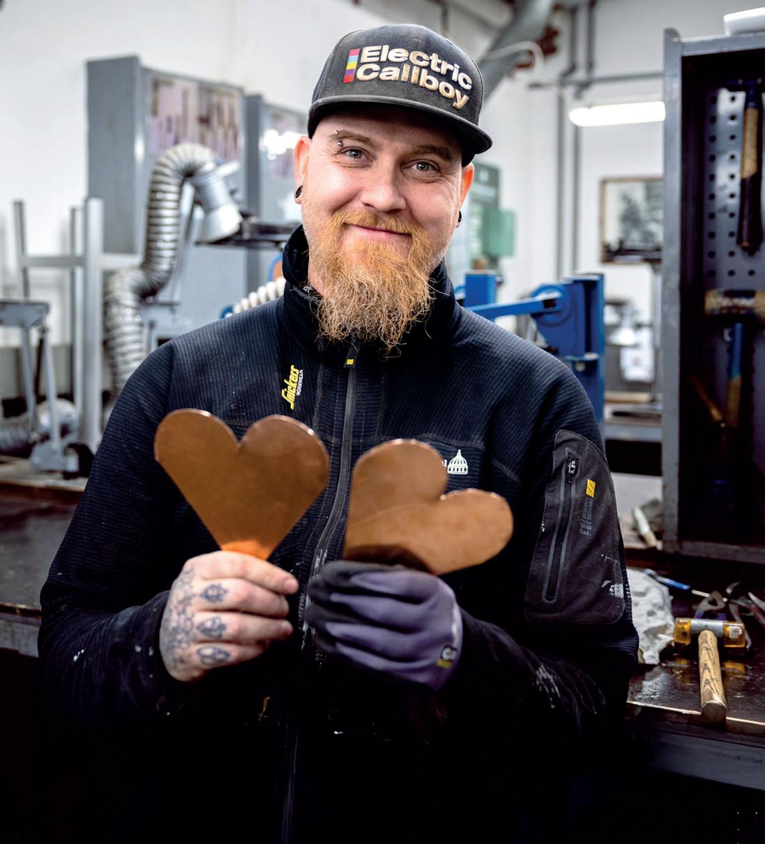 27 MÆND OG EN KVINDE BRUGER HVER ONSDAG EFTERMIDDAG I TO MÅNEDER DERES FRITID PÅ AT FORME KOBBER TIL KUNST.