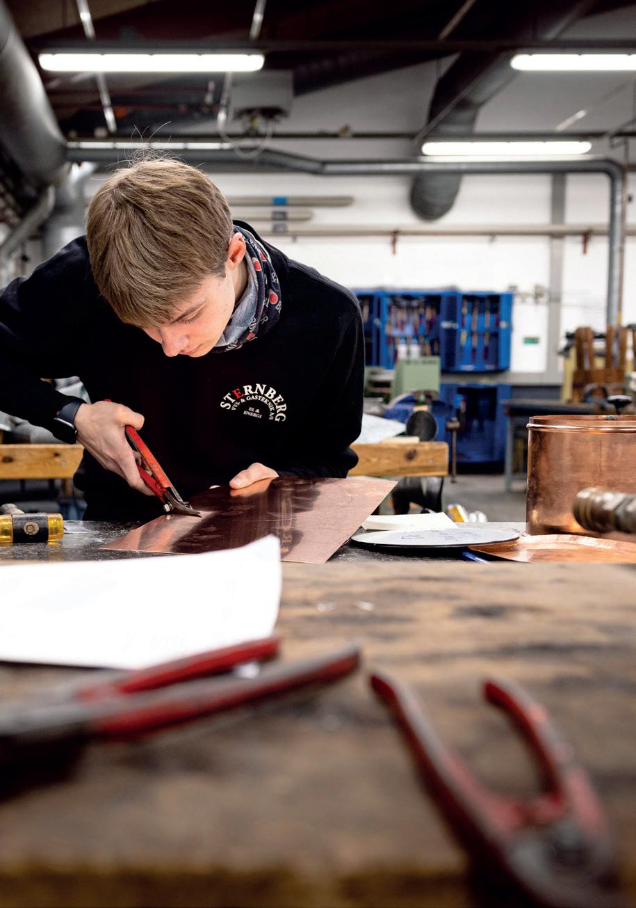 De fleste lærlinge har forladt erhvervsskolen, men i blikværkstedet har 28 ”Blik og Rør”-medlemmer netop taget værktøjet i hånden igen, selvom det for de flestes vedkommende netop er blevet fyraften.