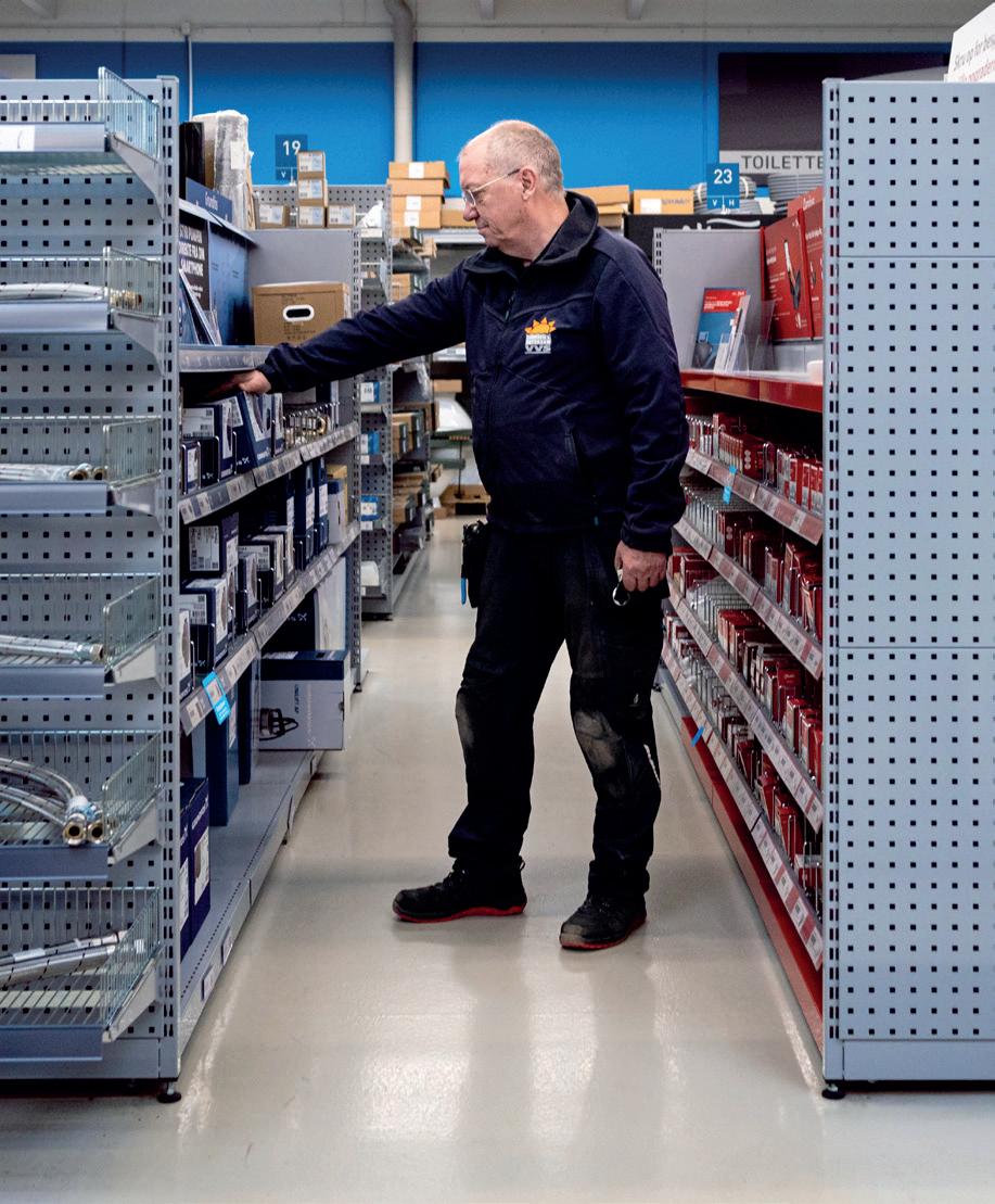 Søren farer rundt i løbet af en arbejdsdag. Her er han hos grossisten Brødrene Dahl for at købe en ny pumpe.