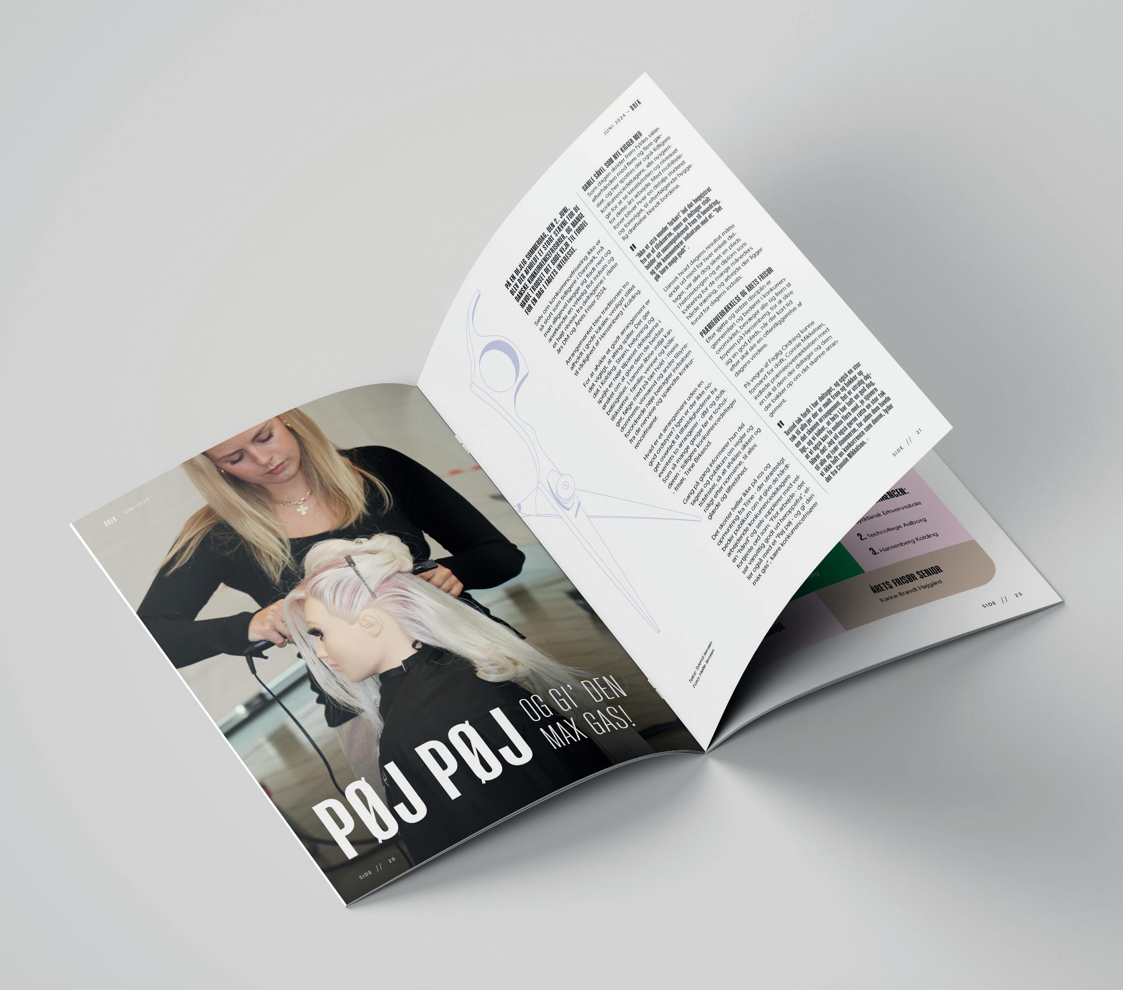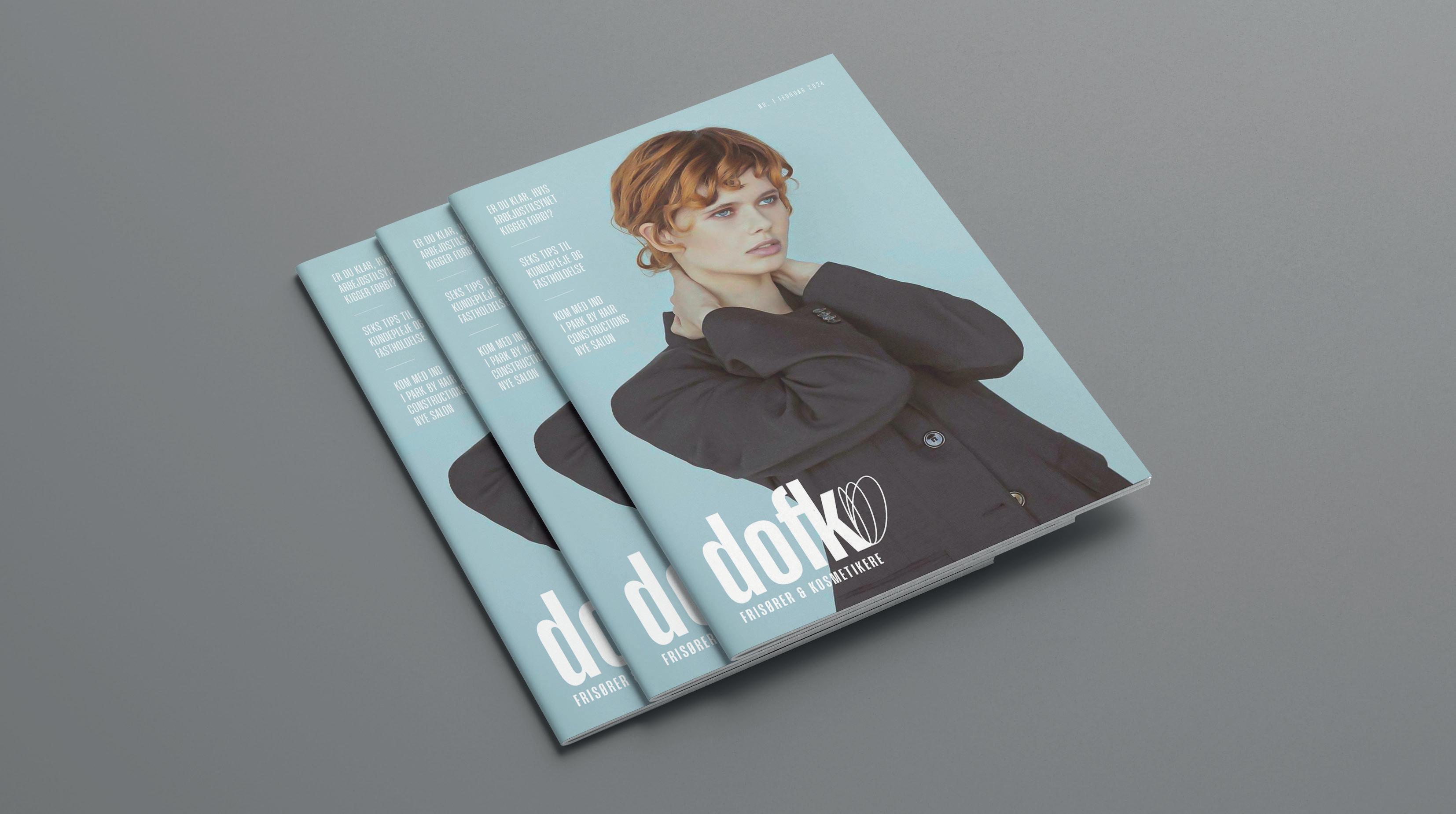 Vi layouter årligt seks udgivelser af fagbladet for brancheorganisationen for selvstændige frisører og kosmetikere (DOFK).