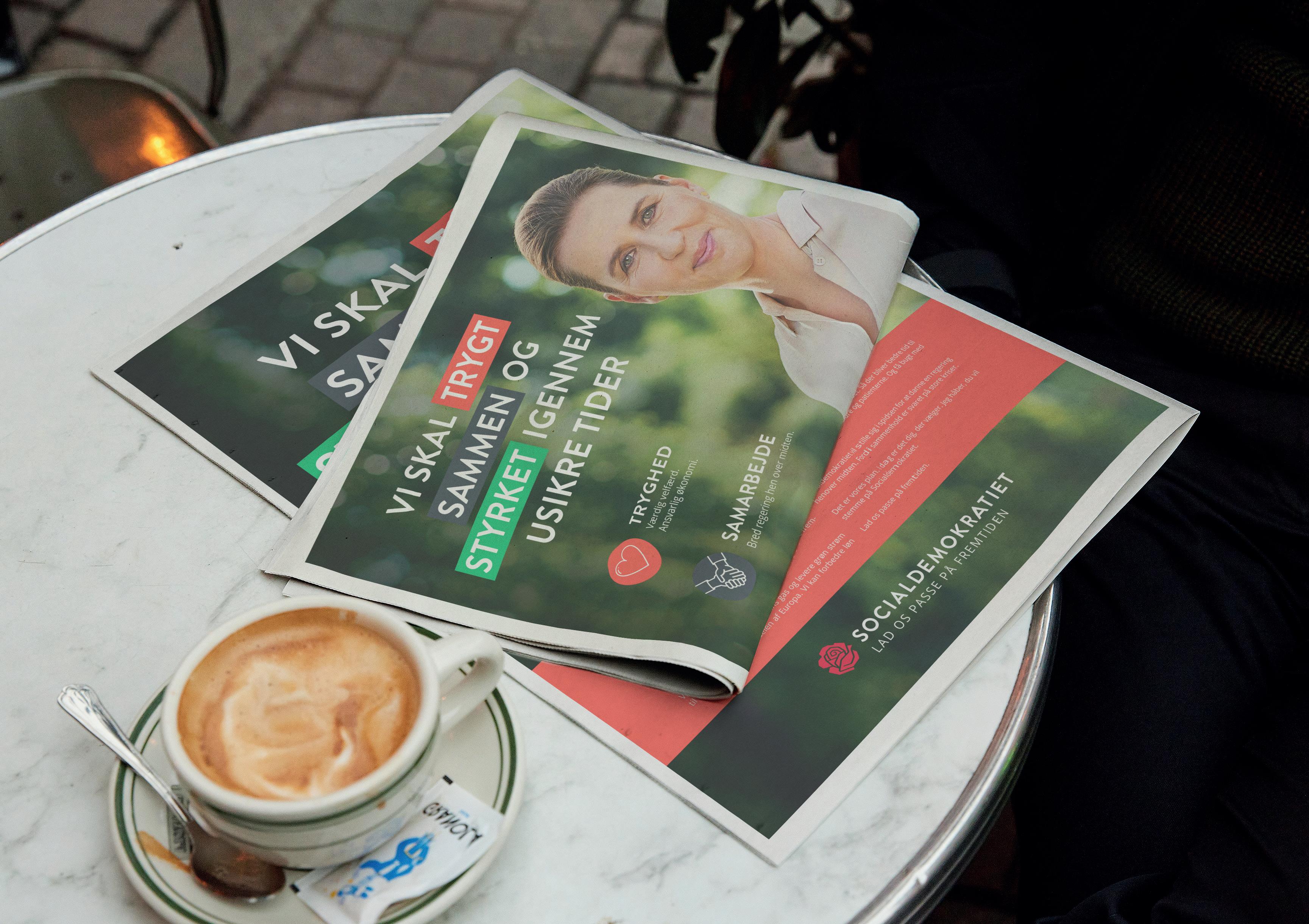 Vi stod for alt grafisk design til Socialdemokratiets valgkamp i 2022. Herunder avisannoncer, bannere, SoMe, busreklamer, abribusannoncer og meget, meget mere.