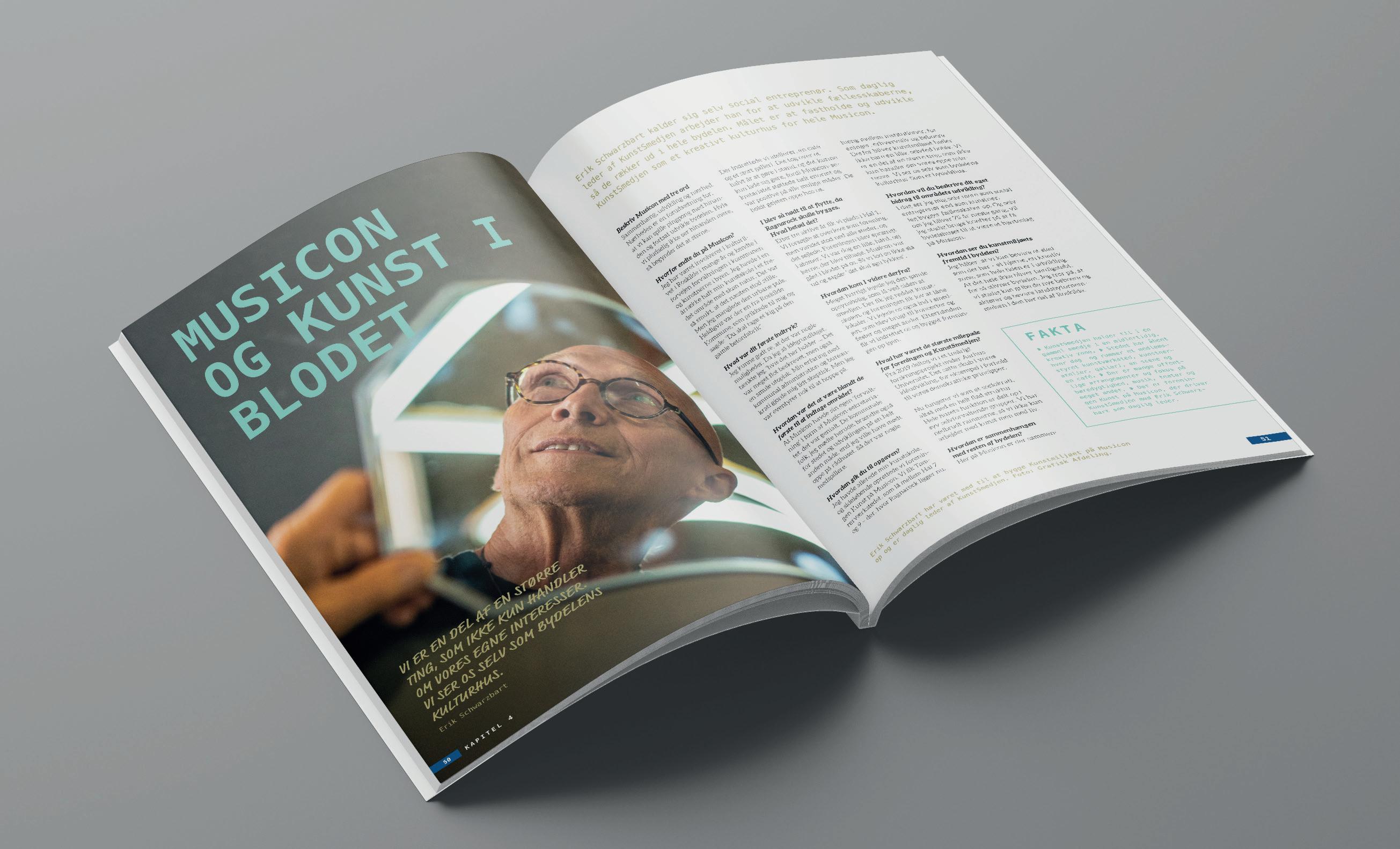 Vi hjalp Roskilde Kommune med layout og tryk af Musicon-bydelens ”legacybog”, hvor 10 års byudvikling med kultur og iværksætteri som omdrejningspunkt, fremstilles på en kreativ og visuel indbydende måde.