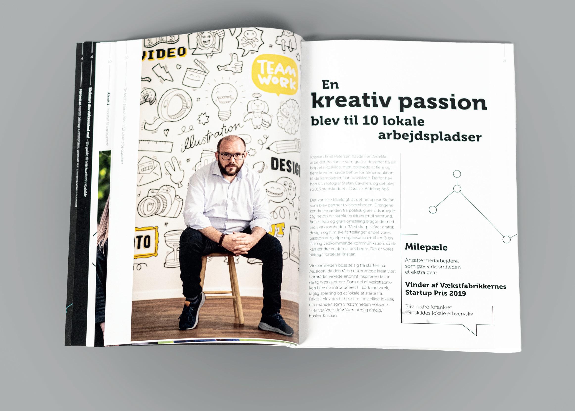 Grafisk Afdeling vandt Vækstfabrikkernes Startuppris 2019, da vi som lokal virksomhed har skabt udvikling, omsætning og lokale arbejdspladser. Derfor blev vi også udvalgt til at portræt i bogen.