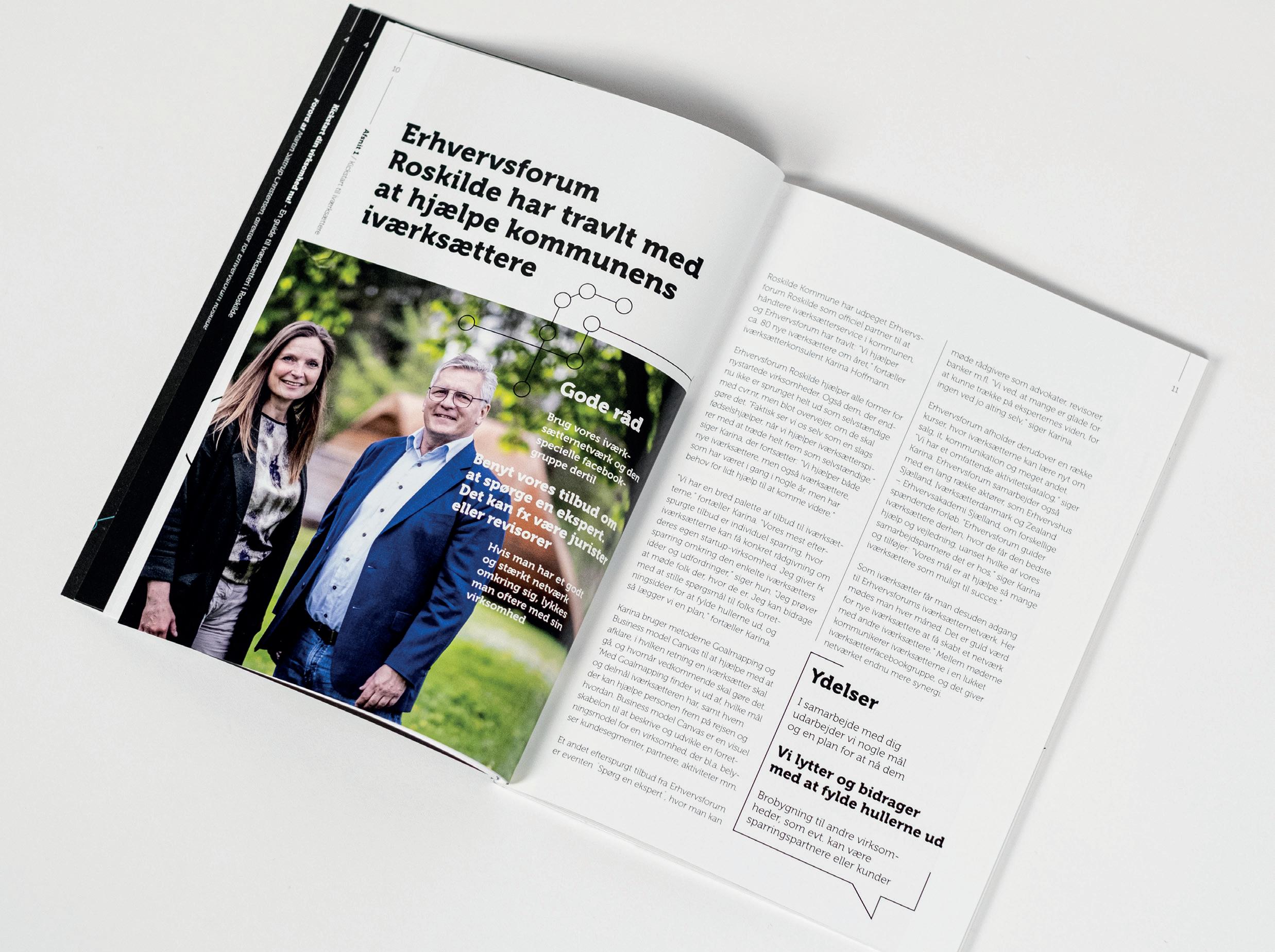 Vi hjalp Erhvervsforum Roskilde med layout og tryk af ”Iværksætterbogen”, som er spækket med nyttige tips og tricks til nye iværksættere i Roskilde.