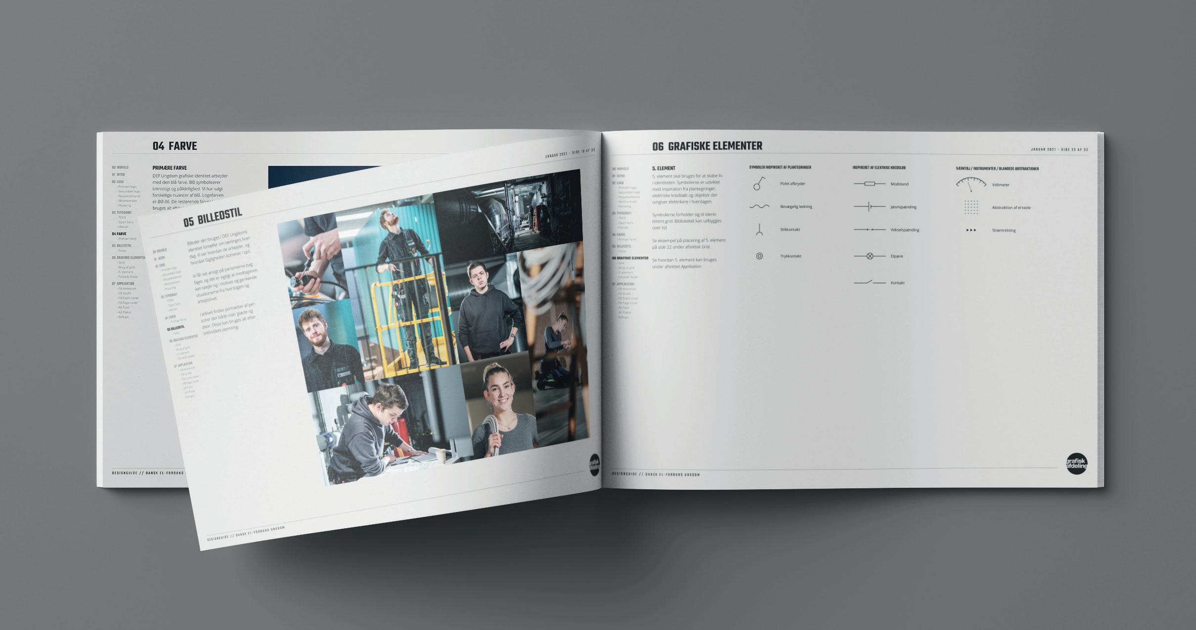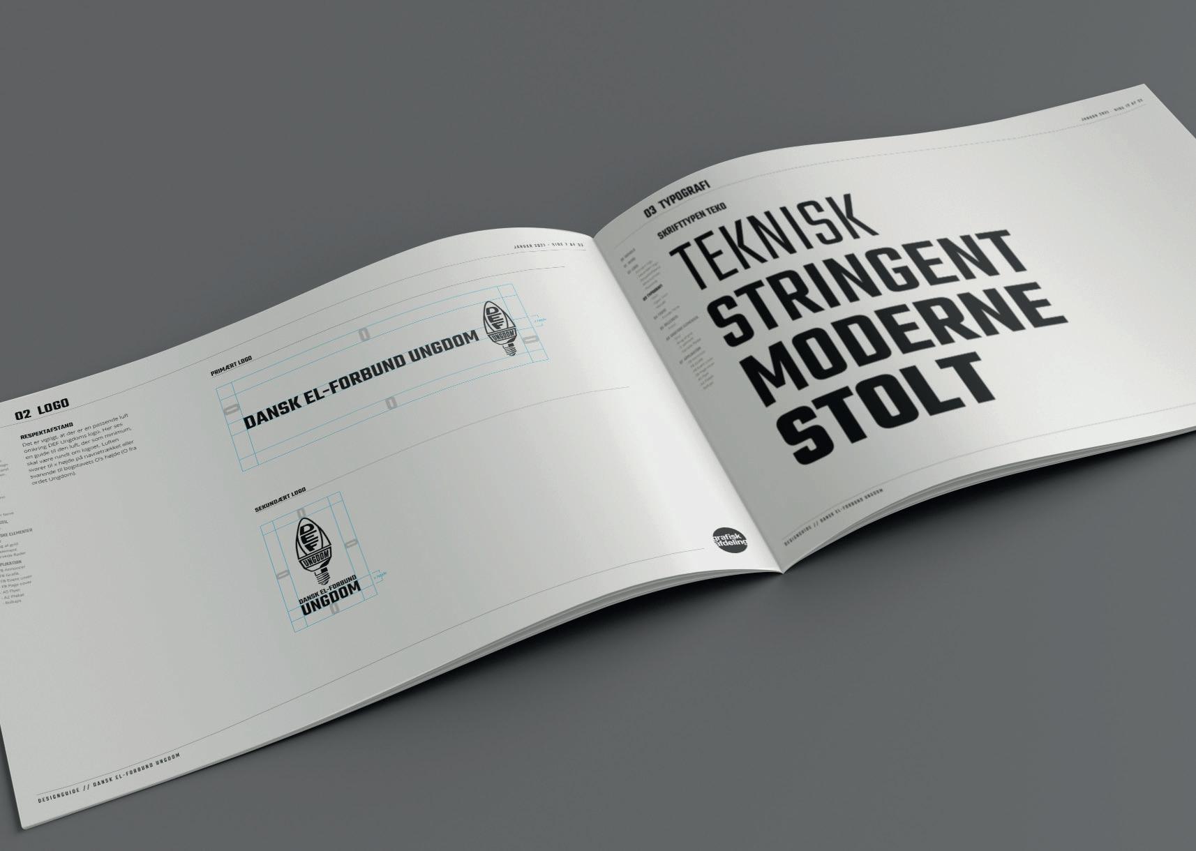 Vi har udarbejdet Dansk El-forbund Ungdoms grafiske identitet, baseret på logo, farver, typografisk formgivning, visuelle elementer og fotografisk stil. Præsenteret i designguide.