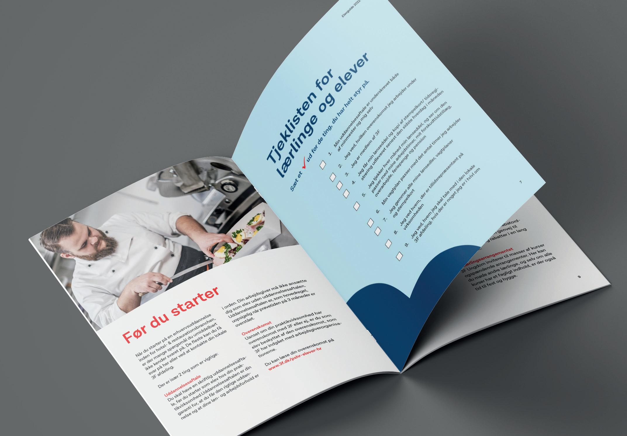 Vi har skabt et nyt udtryk til 3F’s elevguide for fagene i hotelog restaurationsbranchen.