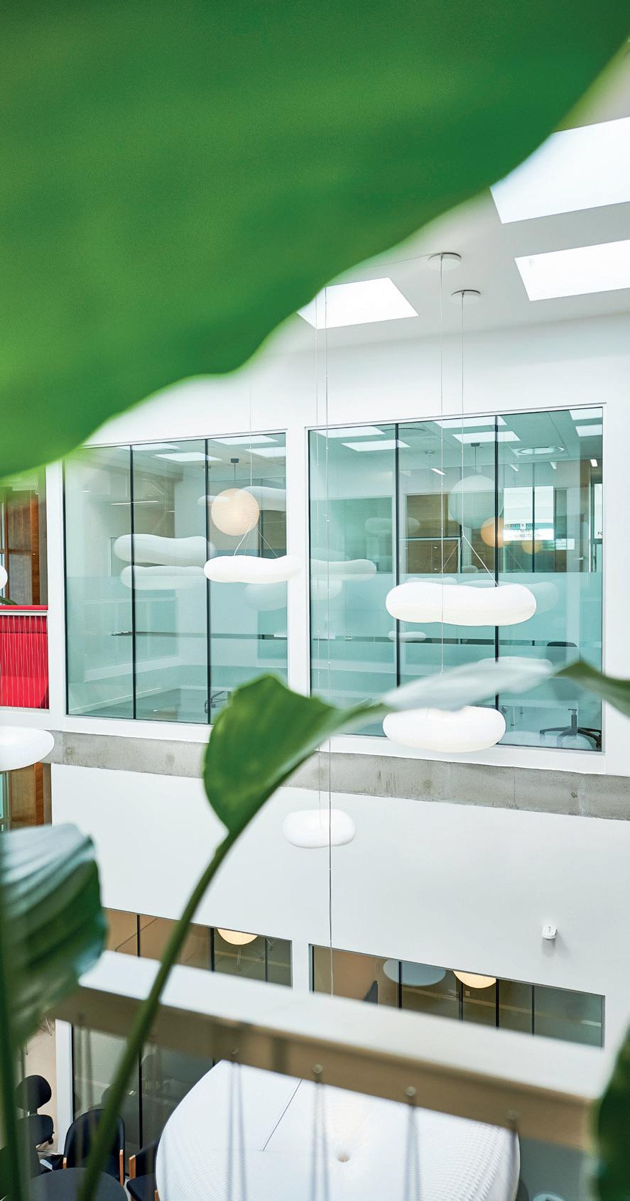 chitect’s vision. The glass walls include CSA-approved glass doors, and as a safety feature, we installed clamped glass railings along the atrium’s concrete edges.