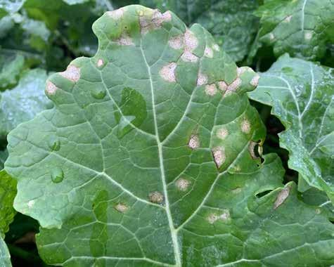 Nødmodne planter pga. knoldbægersvampLys bladplet forårsages af svampen Pyrenopeziza brassicae