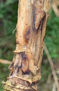 De mest betydende sygdomme i raps, som angriber stænglen, er lys bladplet, kransskimmel og rodhalsråd. Alle tre sygdomme kan medføre betydelige udbyttetab, og de kan være til stede i stænglen samtidigt. For kransskimmel findes der ingen kemiske bekæmpelsesmuligheder, mens der for lys bladplet og rodhalsråd er kemiske løsninger, dog med begrænset til medium effekt.