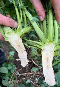Der arbejdes også med at øge resistensen mod vækst af svampen gennem bladstilken og stænglen. Denne resistens virker mod alle racer af svampen.