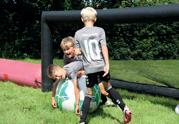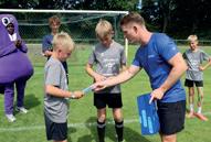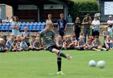 Afslutningen på fodboldskolen var den store straffesparkskonkurrence. Her var Nordea-maskotten Hjalmar på besøg.