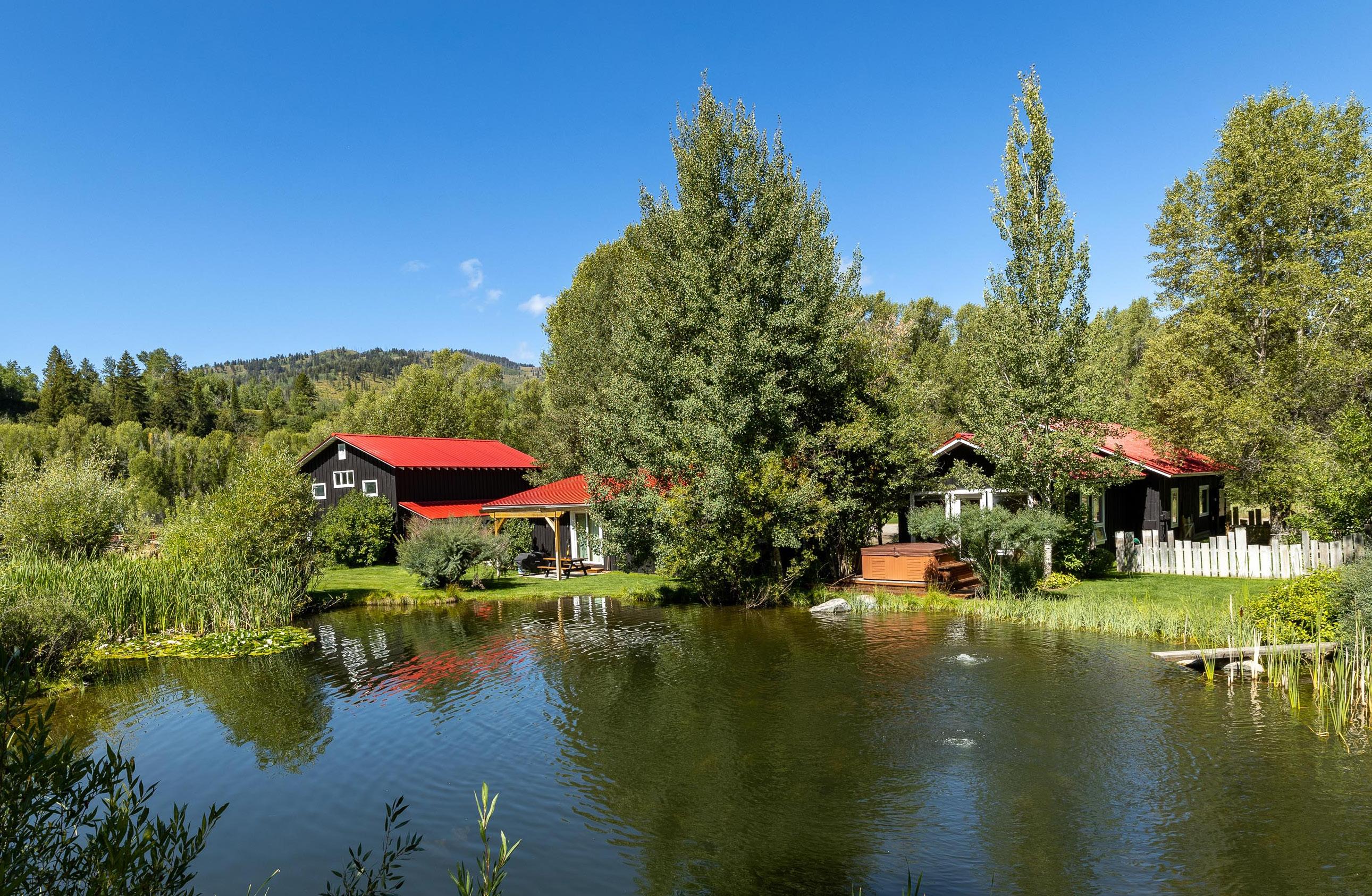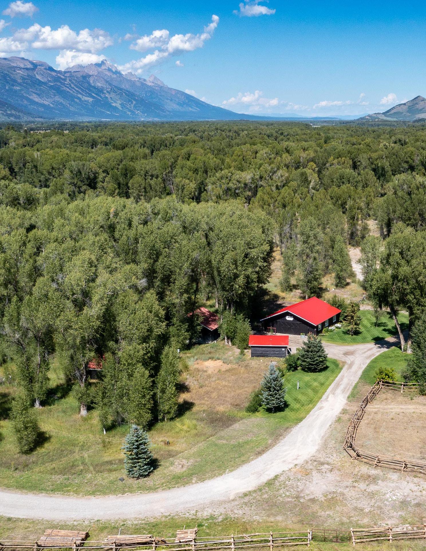 A quintessentially Wyoming compound, designed for living with horses amid nature. Set on 16 lush acres replete with a stocked stream-fed pond, this singular ranch allures with its charming main home, sun-soaked guest cabin, self-sufficient additional living space, two spacious barns, riding arena and three-car garage. Distinctly private yet conveniently located only five miles from downtown Wilson, the property lies just west of the Snake River, within close proximity to the boat ramp and of hundreds of miles of National Forest (accessible via Mosquito Creek). Unfettered by an HOA or CCRs, the new custodians of this extraordinary site will find themselves immersed in a Western wonderland fit for equestrians and recreationalists alike.