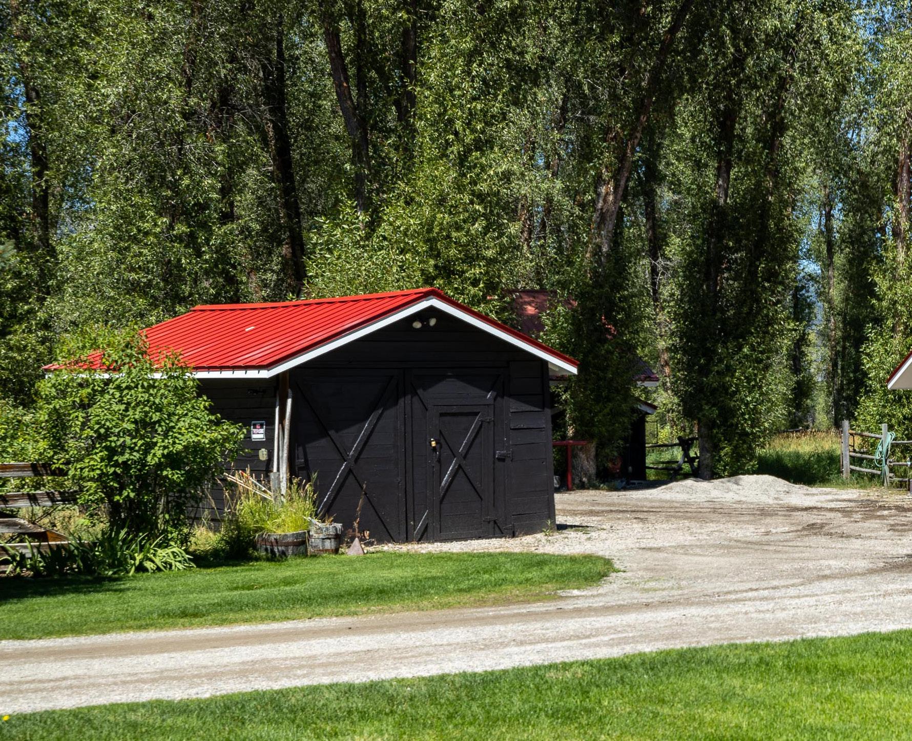 A bonus living space, the shop stokes creativity with its open-concept layout including a three-quarter bath and kitchenette. Nestled between the hay barn and guest cabin, the shop encourages infinite iterations as additional guest quarters, an evening retreat (cue the pool table) or kids getaway.