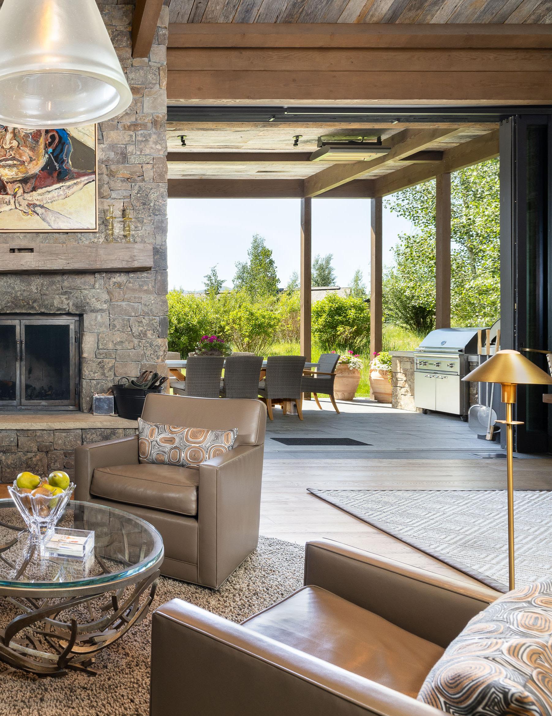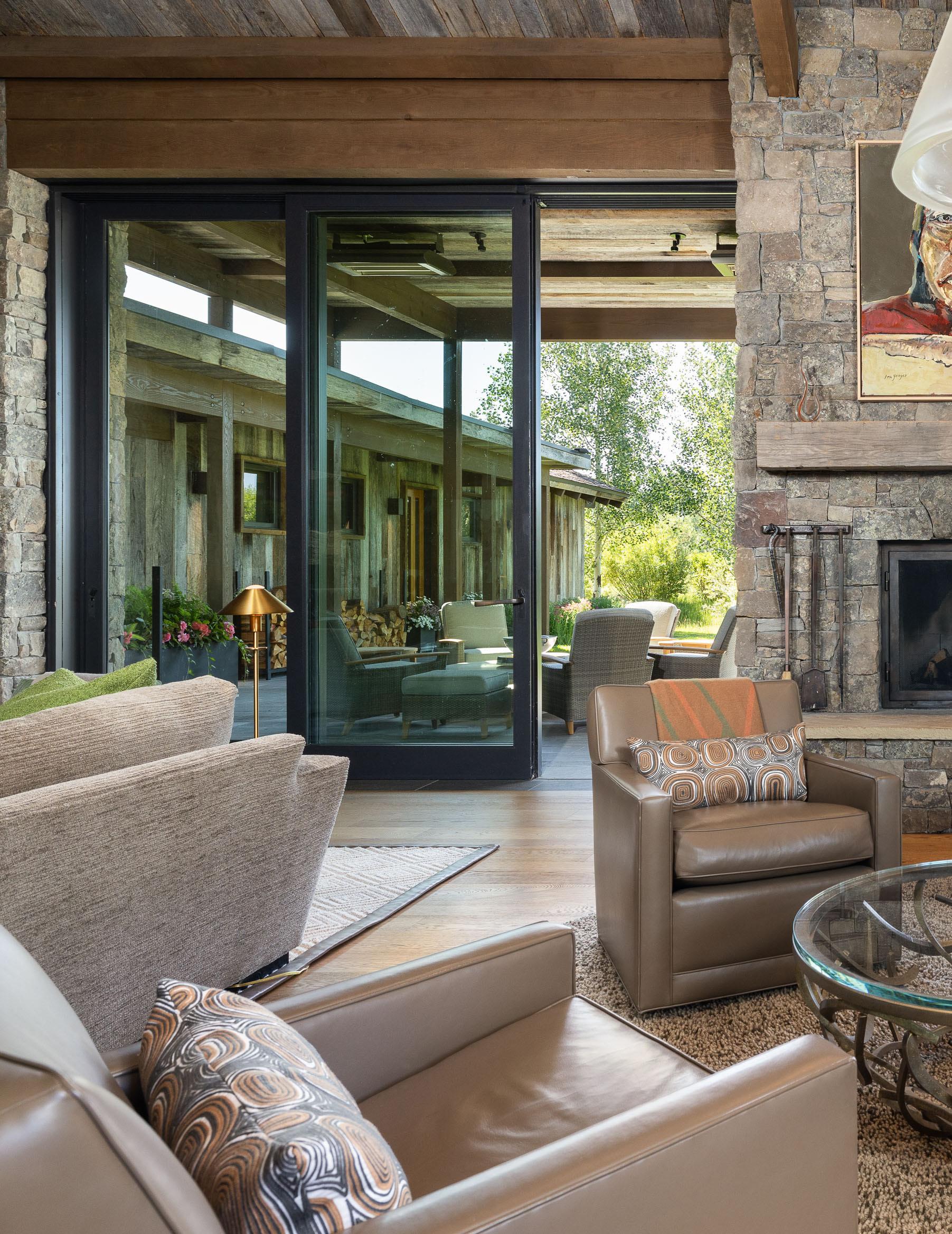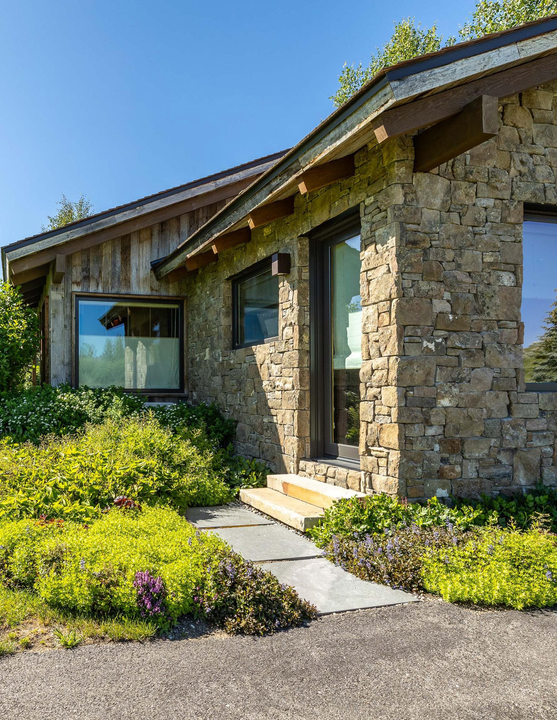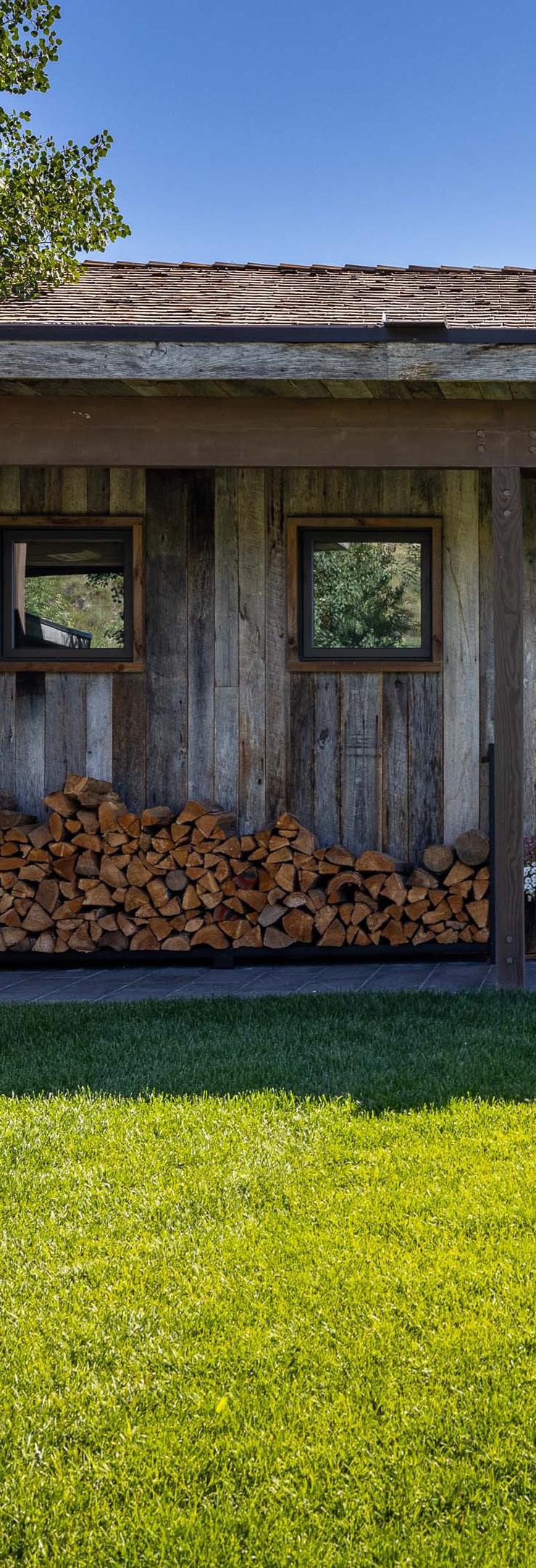 Spanning over 4,000 square feet, the main residence is richly appointed with reclaimed barnwood siding, cedar shake roofing, and interiors that feature oak floors, and vaulted ceilings. The great room welcomes you with sleek and expansive floor-to-ceiling liftand-slide glass doors, integrated surround sound, and Crestron-controlled shades. The home includes three well-appointed en suite bedrooms, two gas fireplaces and one wood-burning fireplace.