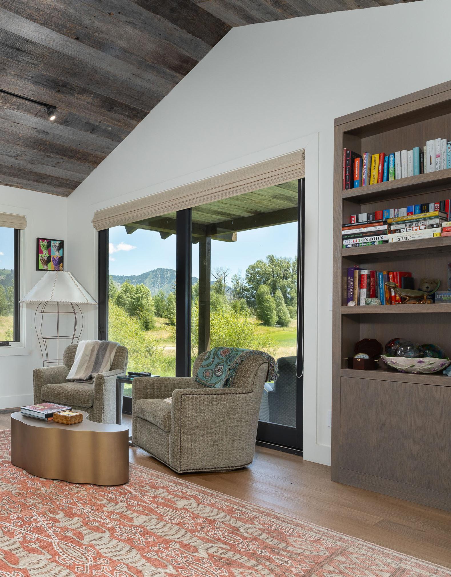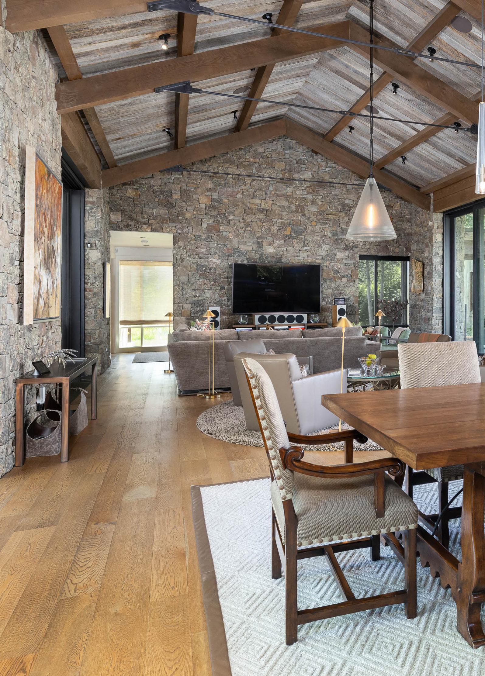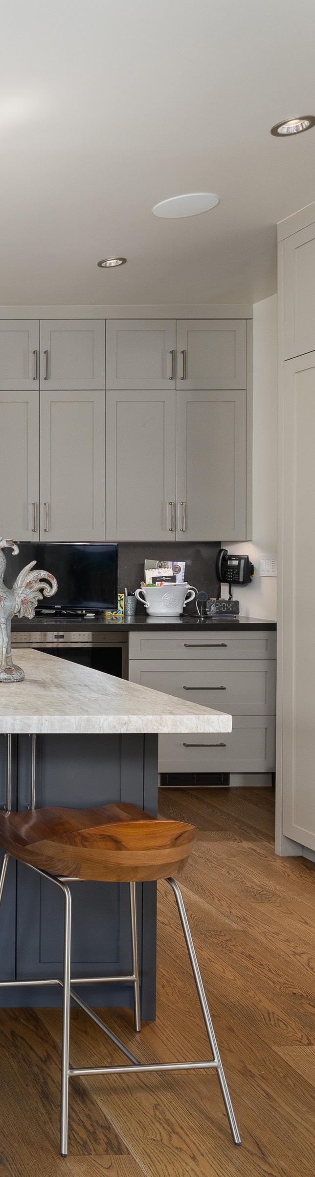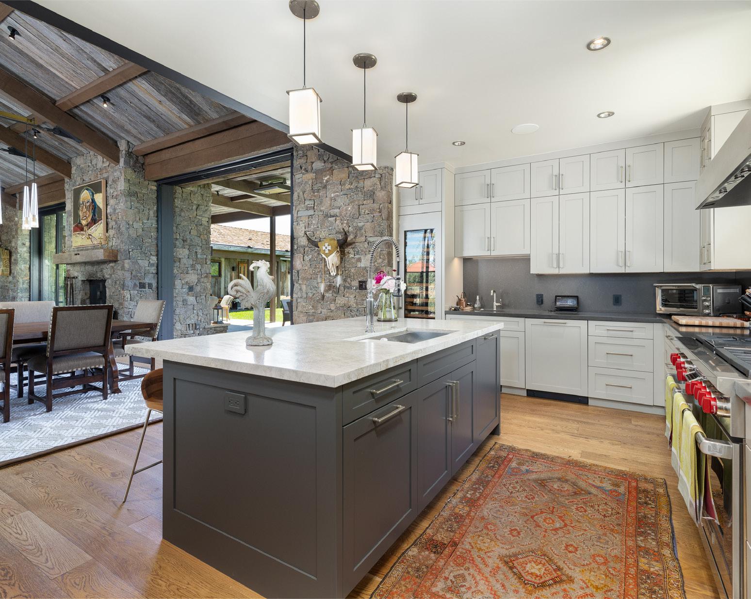 Spanning over 4,000 square feet, the main residence is richly appointed with reclaimed barnwood siding, cedar shake roofing, and interiors that feature oak floors, and vaulted ceilings. The great room welcomes you with sleek and expansive floor-to-ceiling liftand-slide glass doors, integrated surround sound, and Crestron-controlled shades. The home includes three well-appointed en suite bedrooms, two gas fireplaces and one wood-burning fireplace.