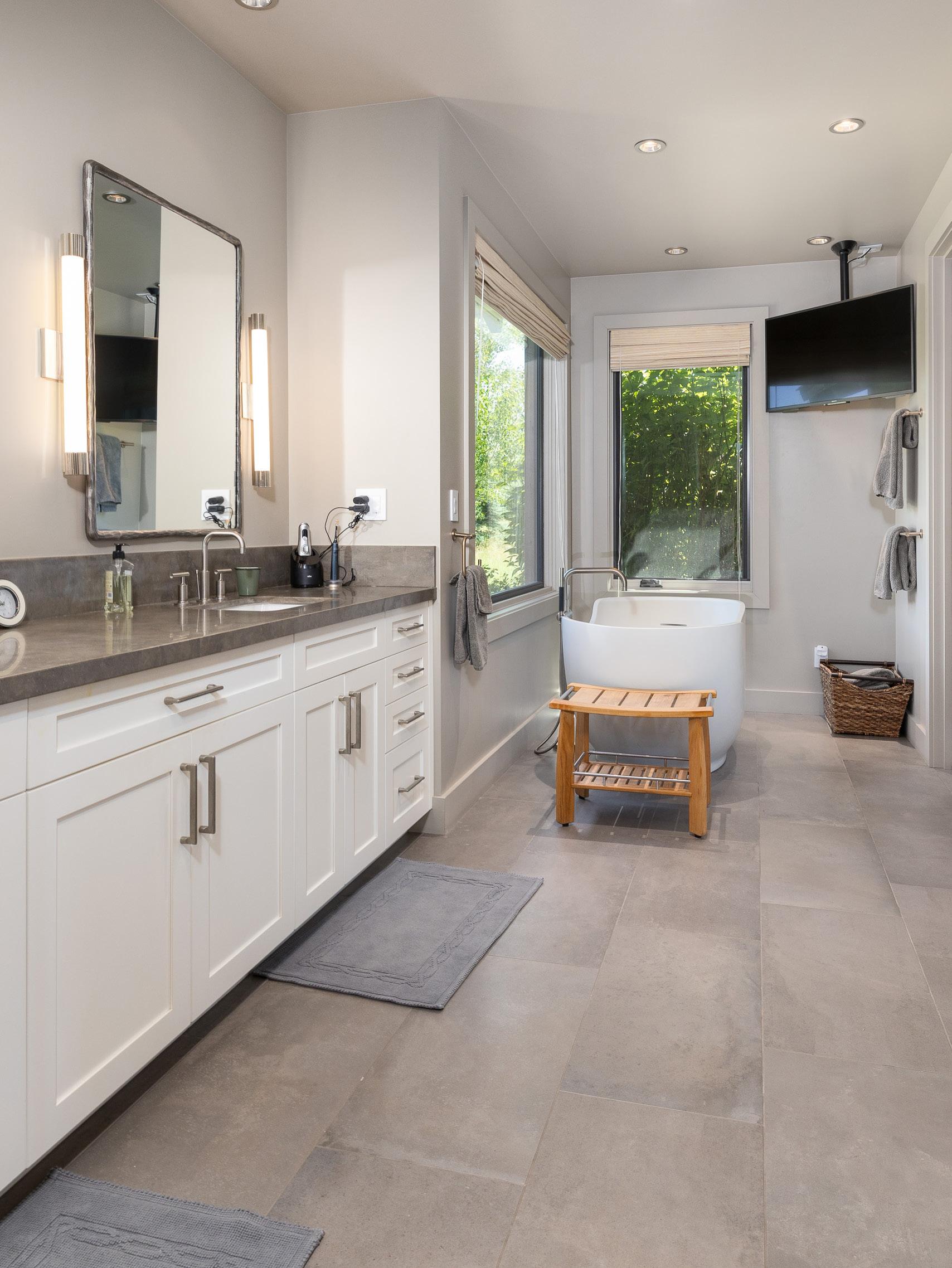 Additional amenities include a 3-car heated garage with EV charging capabilities, extensive storage, and radiant in-floor heating in every bathroom.