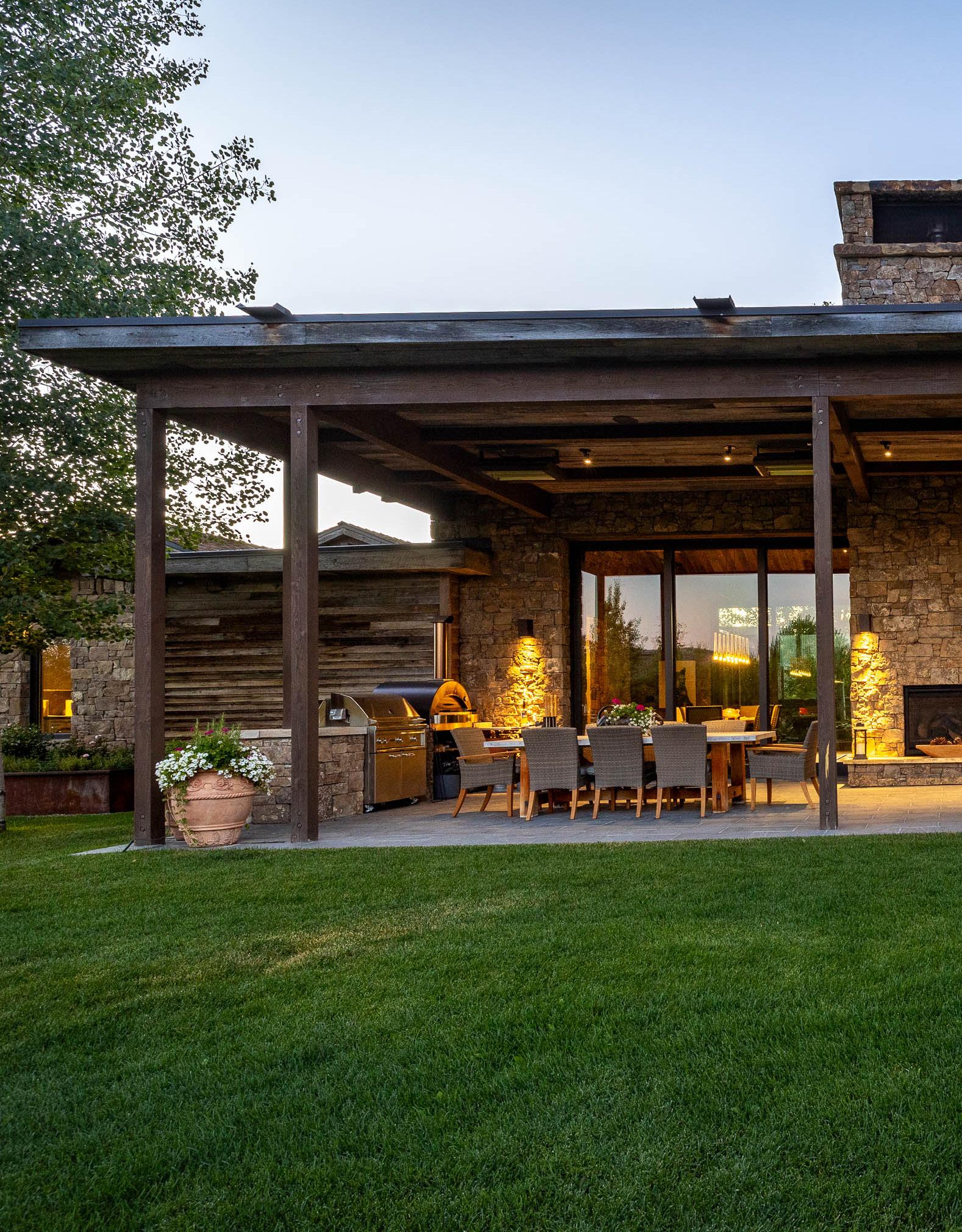 Outdoor living is just as refined, with a covered rear deck, gas firepit, pizza oven, BBQ, integrated speakers, and water fountain on the front patio.