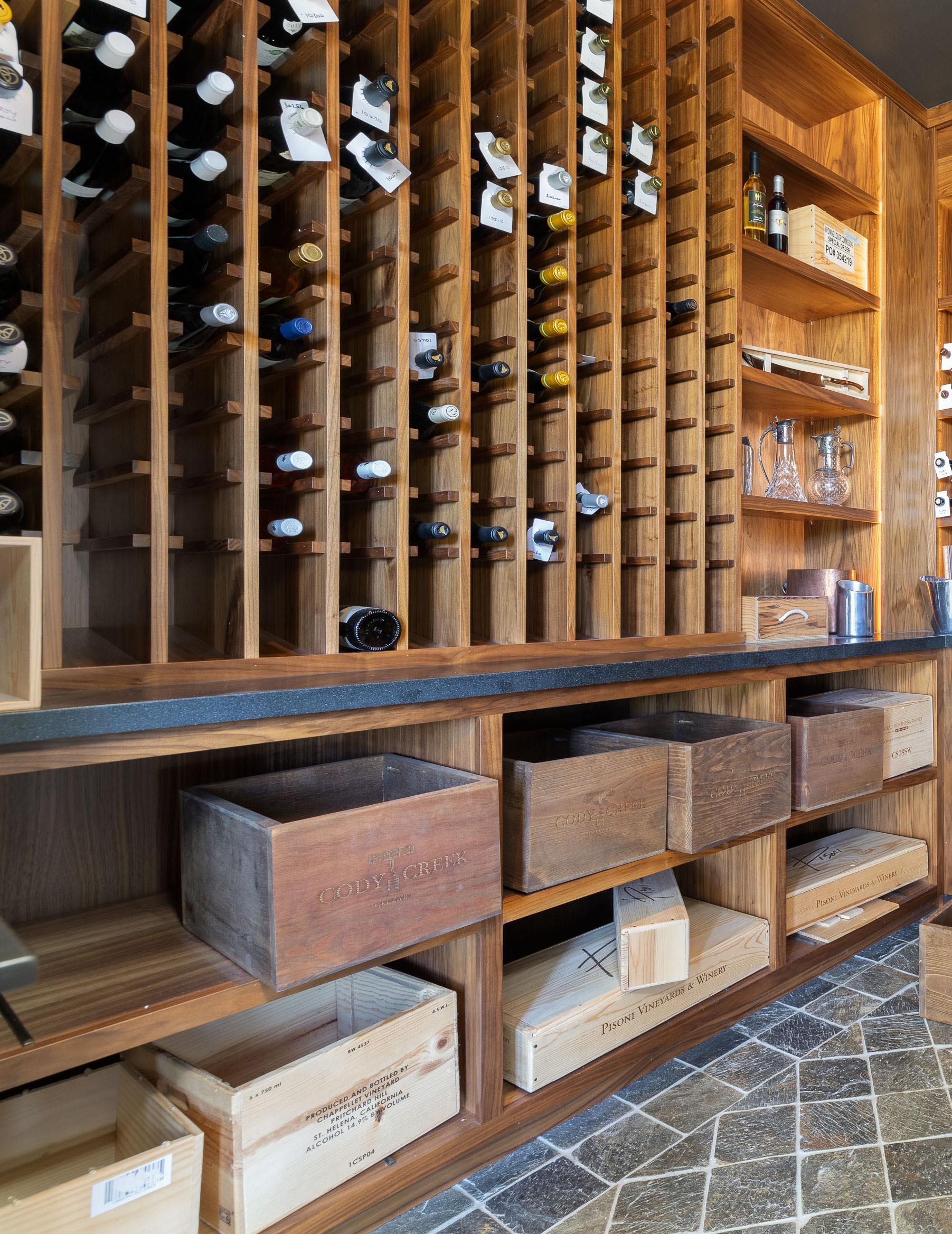 A spacious walk-in pantry, a custom oak wet bar with beverage fridge and ice maker, and a temperature-controlled 800-bottle wine room complete this unparalleled culinary setup.