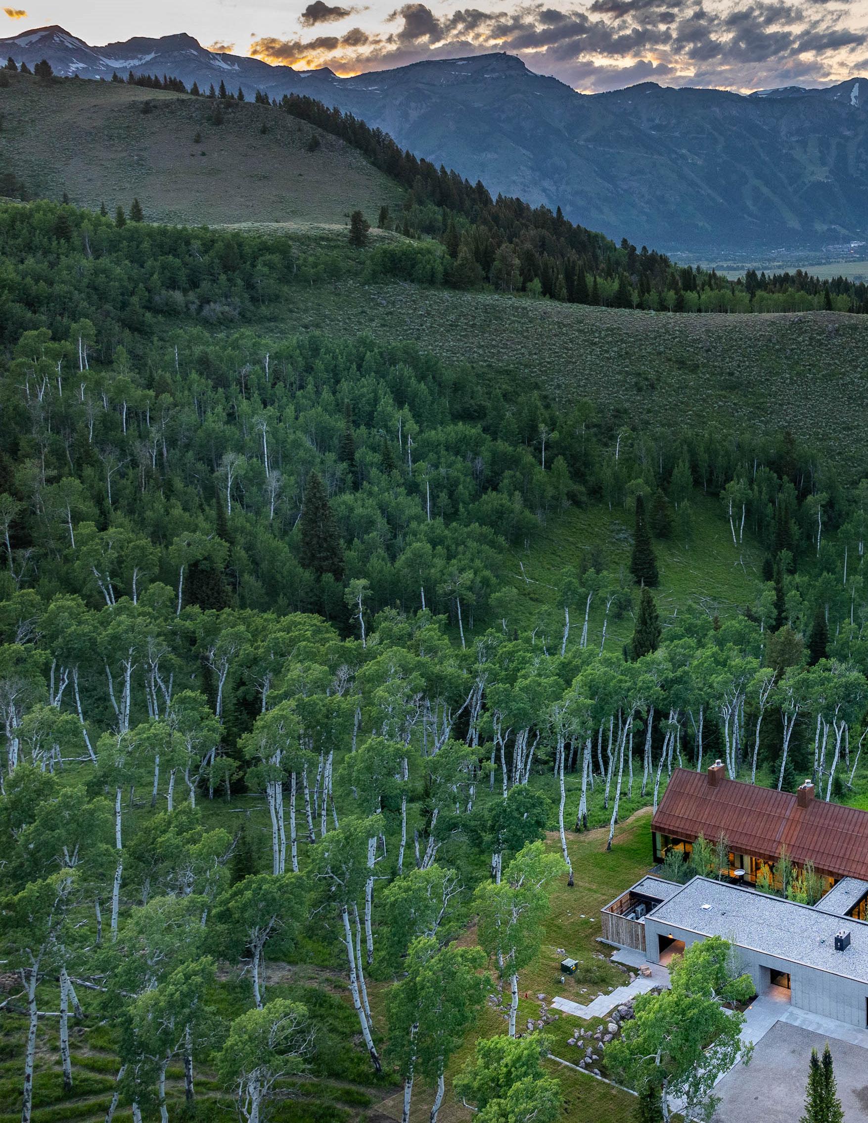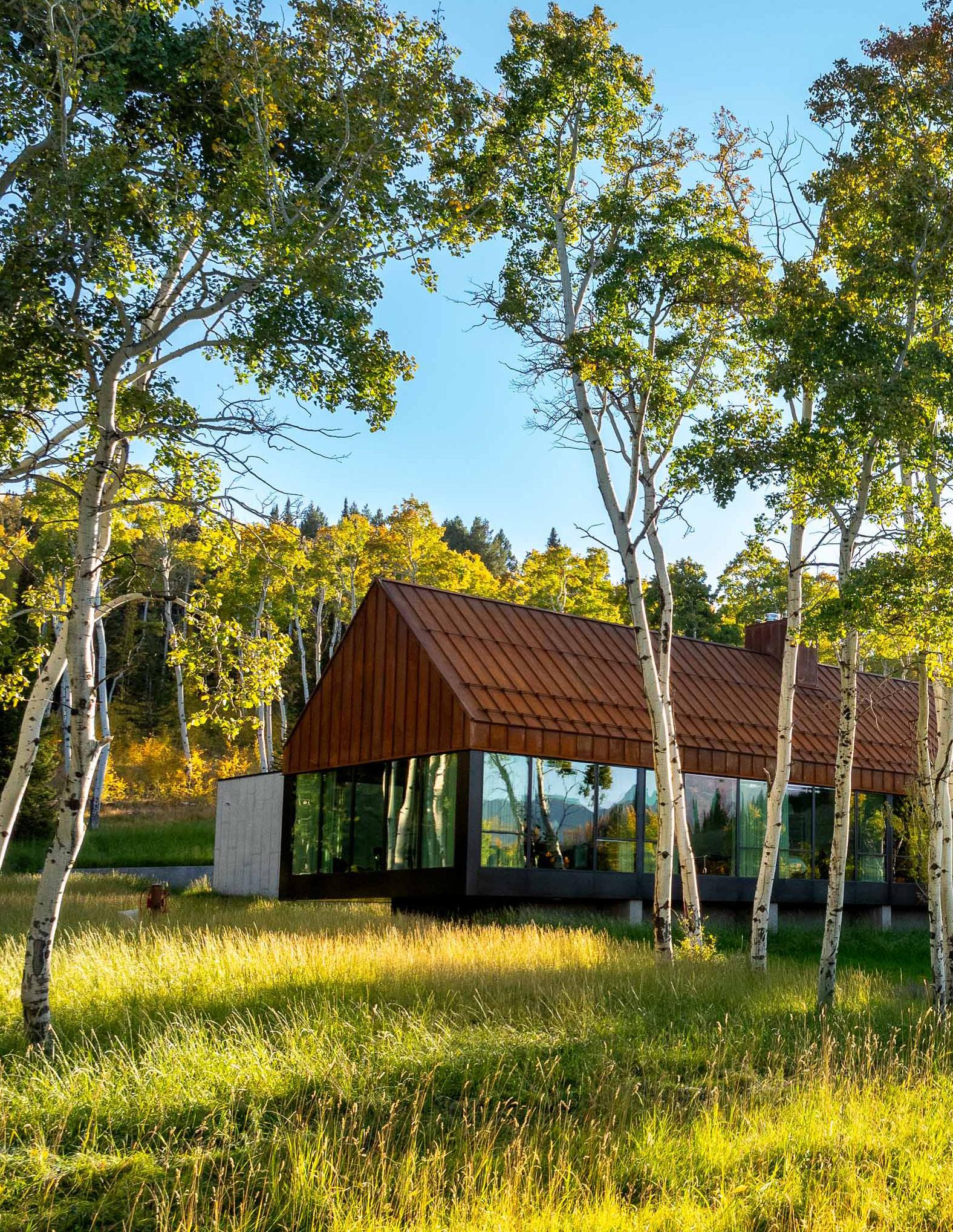 Set within the largest aspen grove at Bar BC Ranch, Timberglass is a singular residence is a modern expression of mountain living—raw, refined, and in constant conversation with its surroundings. Designed as a sculptural study in steel, glass, and concrete, the home dissolves the boundary between architecture and landscape with 360 degrees of uninterrupted views framed by glass curtain walls. A suspended entry bridge, reclaimed timber ceilings, and rock-blasted concrete forms create a sense of place that is both rooted and elevated.