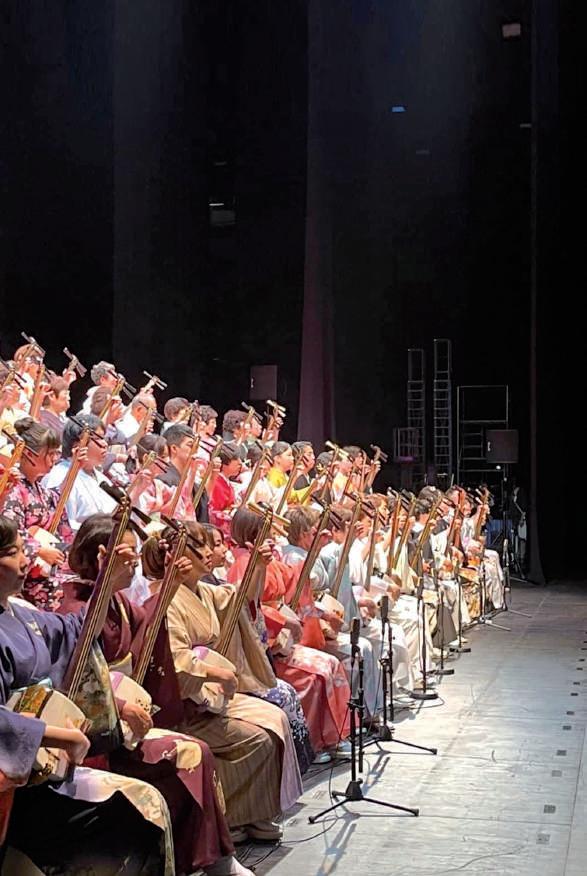 El Shamisen es un instrumento similar a la guitarra, pero posee solo tres cuerdas, se toca con el plectro y es elaborado con madera y cuero animal. Este místico instrumento presenta tres variedades por la diferencia del grosor del mástil, son futo-zao (mástil grueso), chu-zao (mástil medio) y hoso-zao (mástil delgado). Mientras más grueso sea el mástil, emite un sonido más fuerte y enérgico, debido a ello y dependiendo del tipo de música se cambia o utiliza otro tipo de Shamisen. Se lo toca solo y también como parte de los instrumentos de una orquesta o grupo musical. En la escena del arte tradicional de Japón como el teatro Kabuki y el Minyou (canción folclórica), el Shamisen desempeña un papel muy importante.