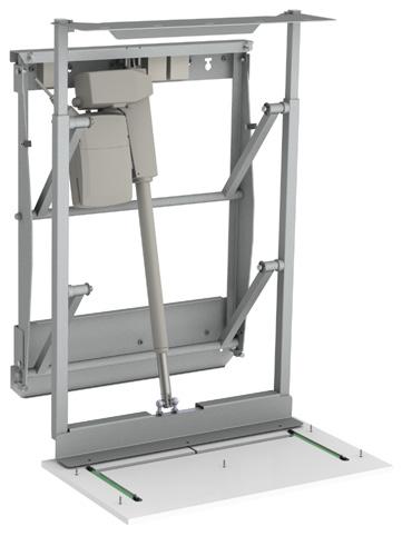 The lift takes up little space and can easily be mounted in existing or new cabinets without them having to protrude further from the wall.