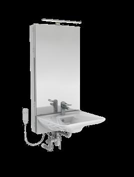 Lift model Manual, adjustable washbasin unit Adjustment with gas spring. Adjustable in intervals of 12 mm