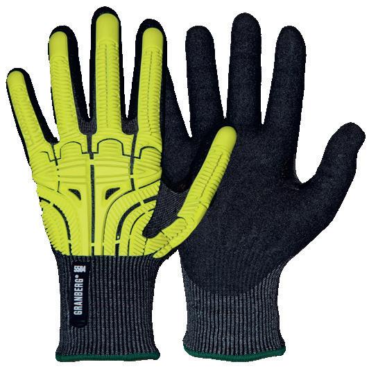 • Beläggningen ger en viss stötdämpande effekt vid hantering av hårda material. Handryggen är vatten-och oljeavvisande. OEKO-TEX® 100-godkända.
