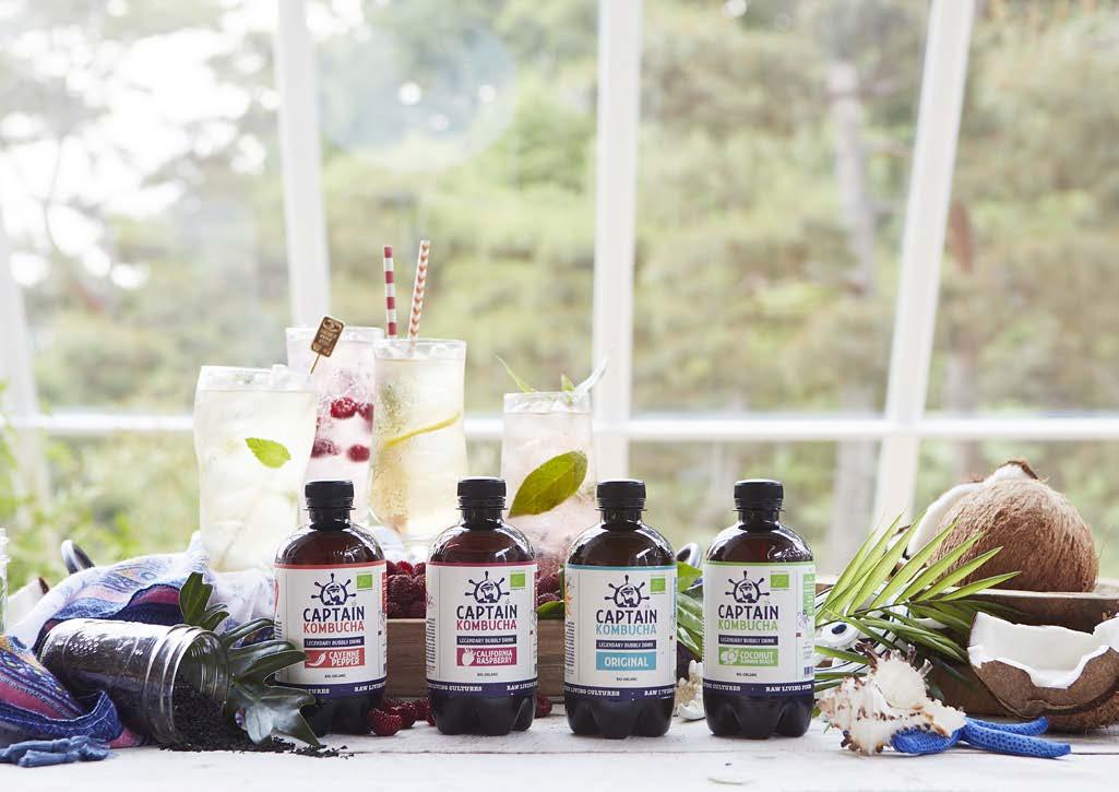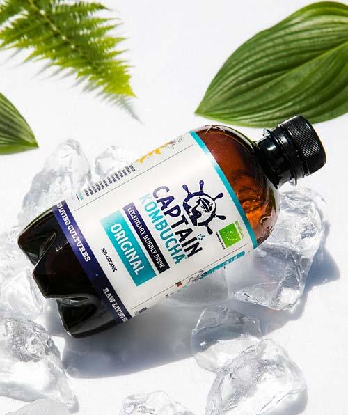 sistemas digestivo e imunitário, dos níveis de energia e auxiliar na perda de peso. A contribuir para estes benefícios está a crucial seleção dos ingredientes, não só para a criação da kombucha, mas também no que diz respeito às frutas e ervas que vão adicionar sabor à bebida. A Captain Kombucha utiliza sumos de frutos que são produzidos a partir de fruta fresca, já que o seu objetivo principal é oferecer uma kombucha de elevadíssima qualidade. No entanto, visto que a fruta tem de estar disponível todo o ano, nem sempre é possível conseguir isso apenas com produtos locais, pelo que acabam também por recorrer a produtores internacionais.