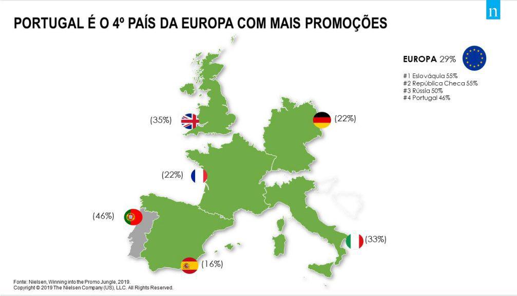 Em 2020, Portugal ocupou o primeiro lugar relativamente ao peso que as promoções têm no total das vendas em FMCG, com uma quota de 31,1%. Ainda que as promoções tenham abrandado (como já se referiu anteriormente), Portugal continua líder na atividade promocional, mas também na procura desta por parte dos compradores.