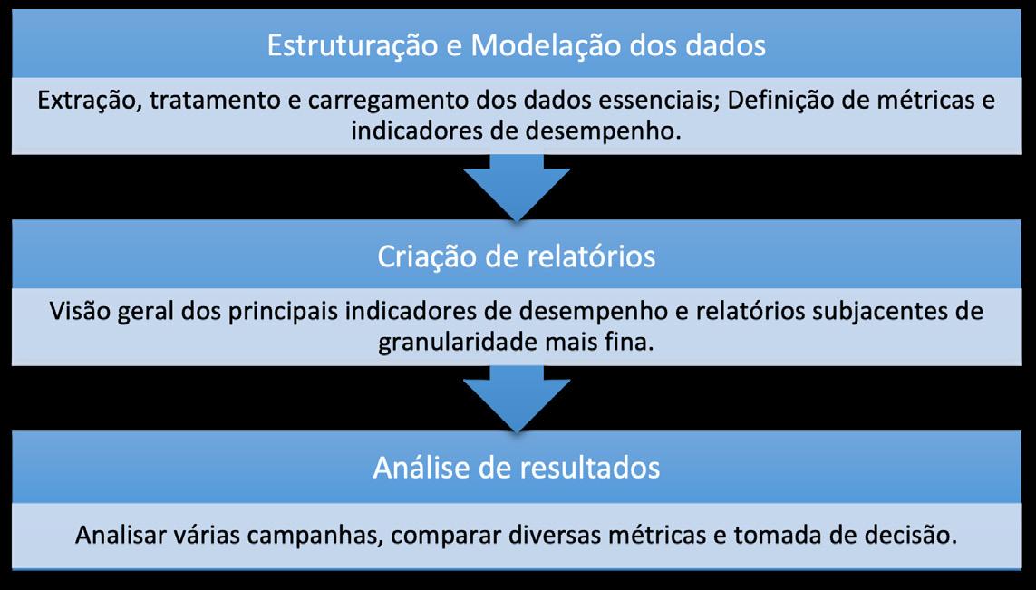 O processo simplificado de Business Intelligence aplicado à análise promocional divide-se, essencialmente, em três fases distintas: estruturação e modelação dos dados, criação de relatórios com os KPIs mais importantes e análise de resultados.