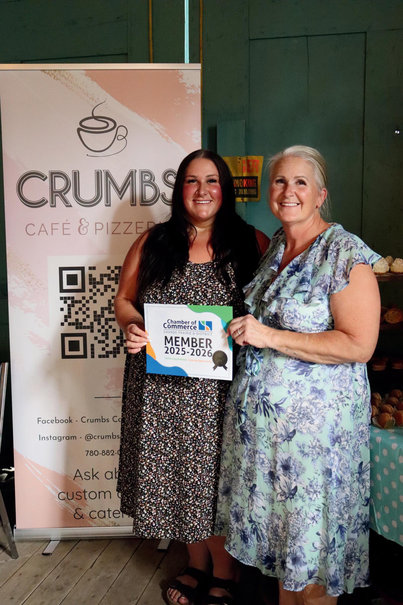 We'reexcitedtowelcomeTaylorSakundiakand Crumbs Cafe and Pizzeria to our Chamber network!Lookingforwardtoseeingthisbusiness growinourneighboringcommunityofSexsmith