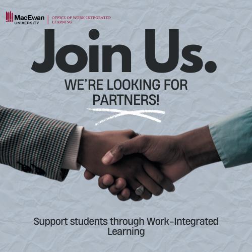 MacEwan University is currently seeking community partners to collaborate with students on a variety of work-integrated learning (WIL)opportunitiesstartinginthefall.WILprojectscanprovideyour organization with fresh perspectives, new strategies, applied researchandemergingtalent.Buildyourtalentpipelineanddevelop operationalefficiencieswhilegivingstudentstheopportunitytoapply academicprinciplesintheworkplace.