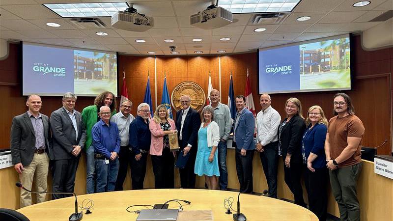 TheCityofGrandePrairieproudlyacceptedthe2025Minister’s AwardforMunicipalExcellenceattheCityCouncilmeetingheld September8,2025forworkdonetostreamlinethedevelopment permittingprocess.
