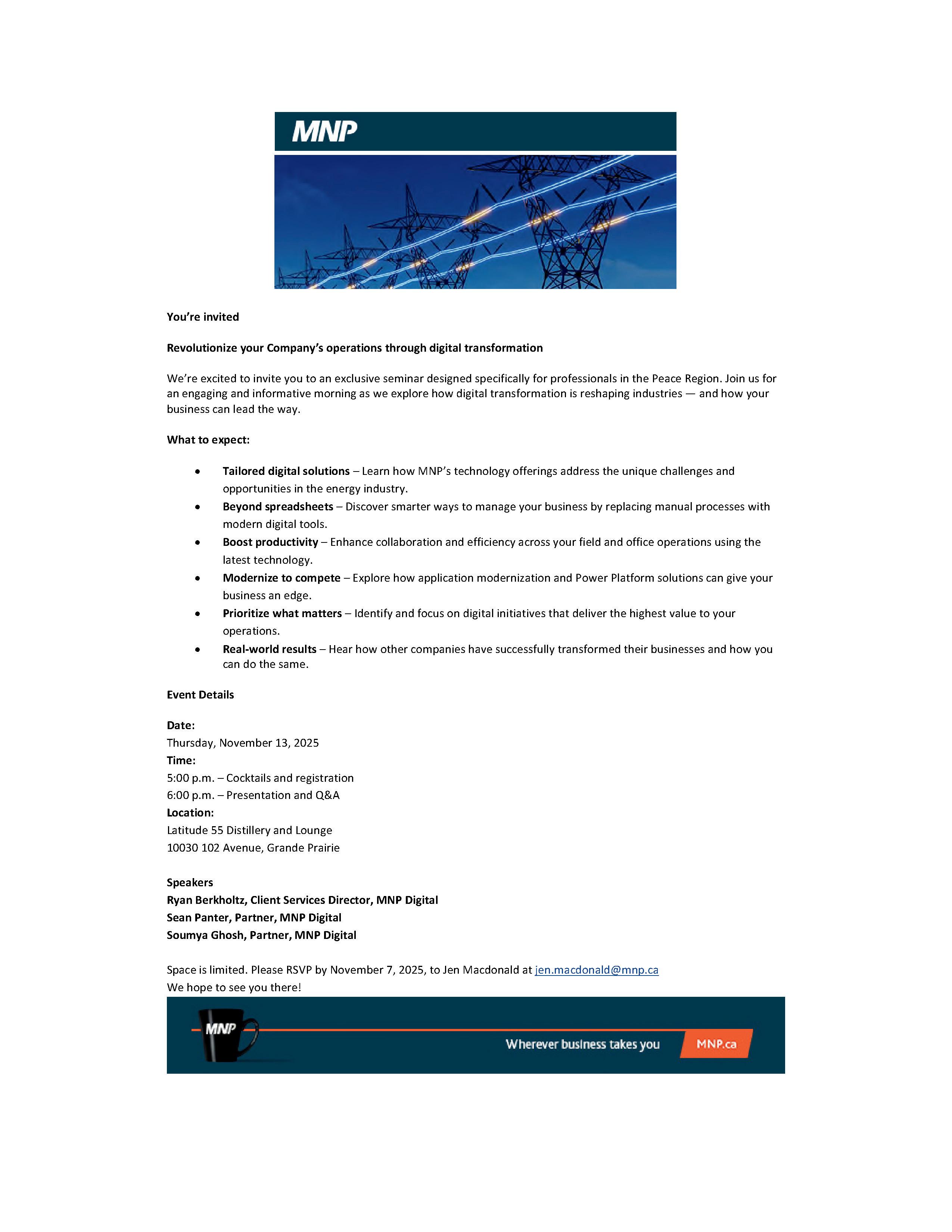 TheGrandePrairie&DistrictChamberofCommerce wasproudtohostanothersuccessfulYourRegion,Your VoiceonFriday,November7,2025,atthePomeroyHotel &ConferenceCentre.Theeveningbroughttogether businessleaders,communitymembers,andelected officialsfromalllevelsofgovernmentforanopenand engagingdiscussionaboutthefutureofourregion.