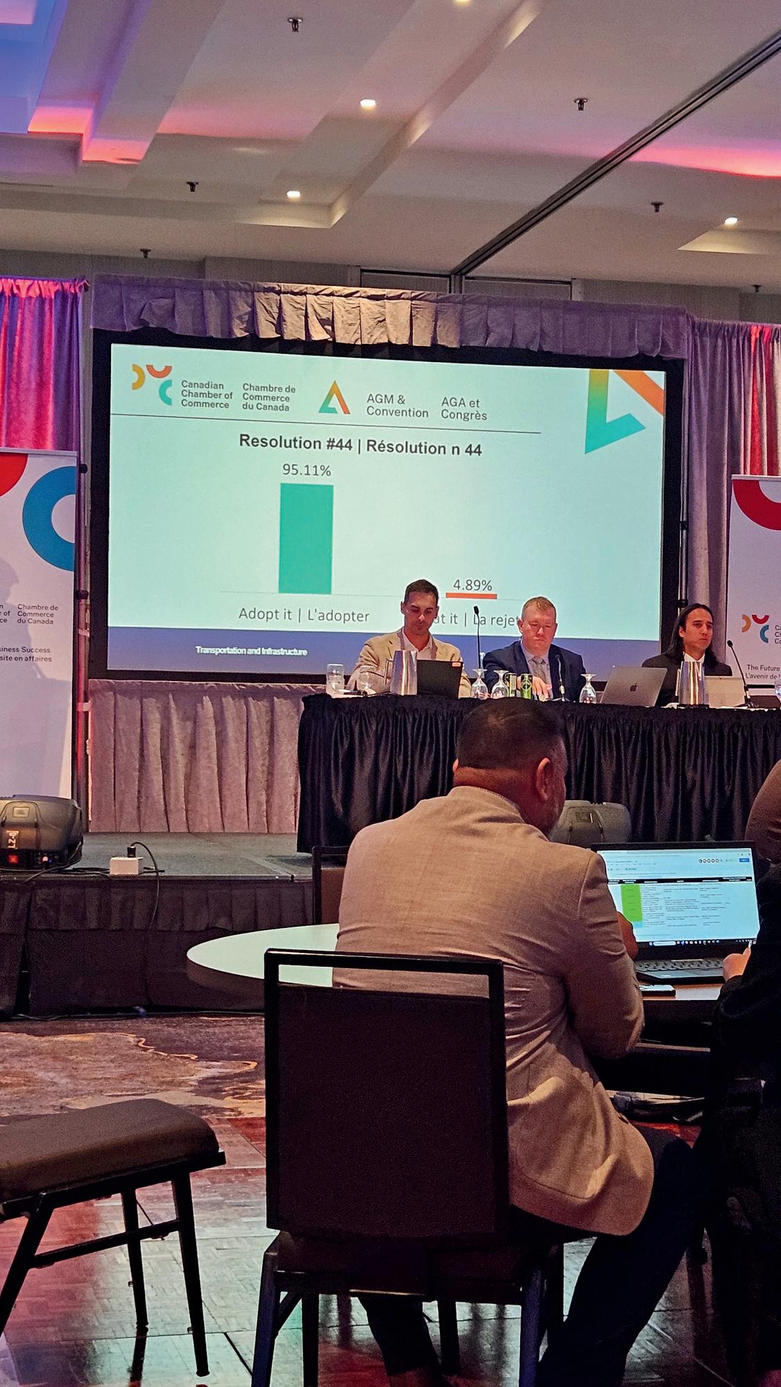 One of the highlights of the event which was held October 8-9 in Mississauga, Ontario was the Policy Resolution Debates. Chambers from across the country submit policies for consideration by their peers. This year, 46 policies were passed including the following sponsored by our Chamber: