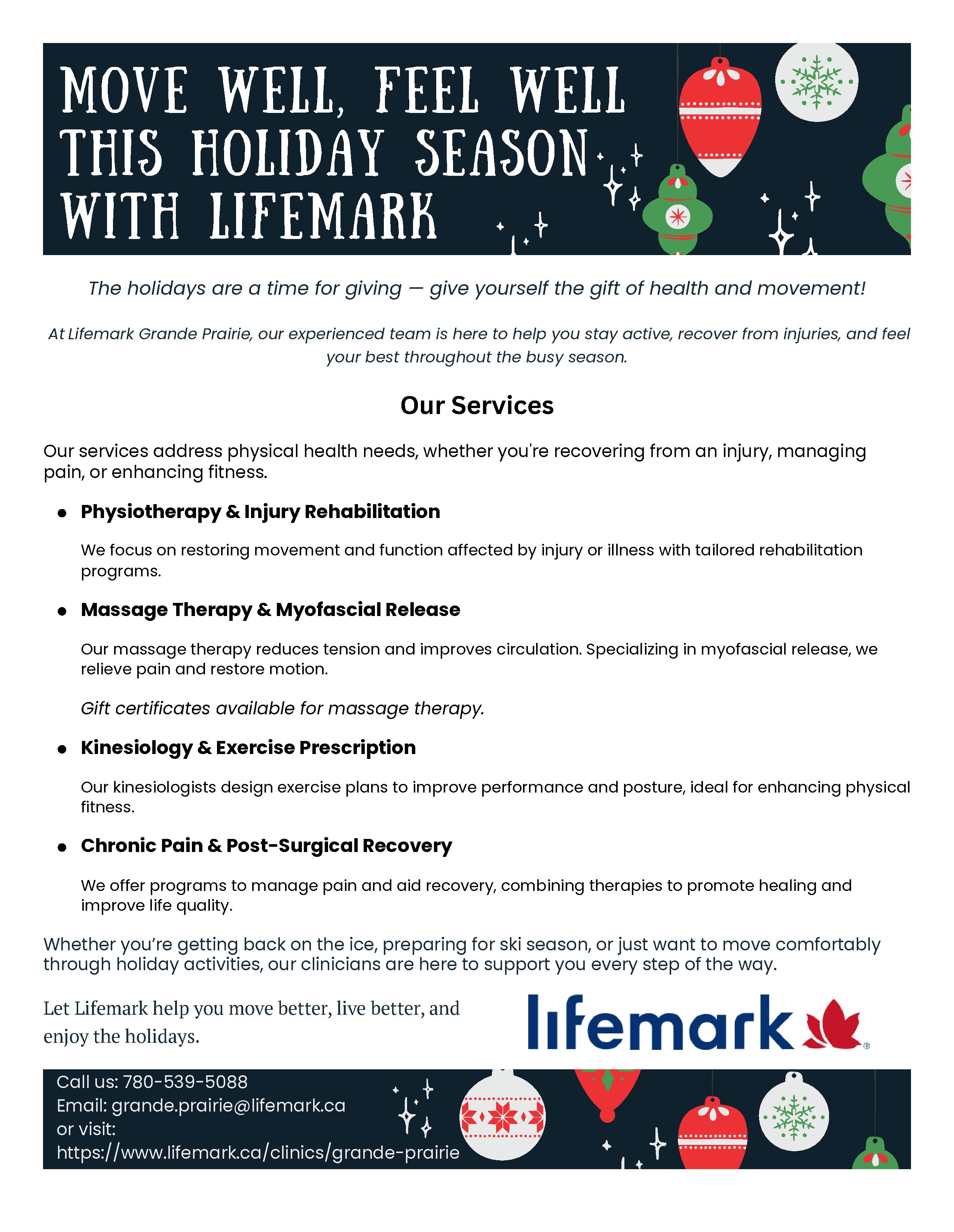 As we celebrate this festive time of year, I want to extend warm Season’s Greetings to our local and regional communities across Grande Prairie and area. To our business owners, entrepreneurs, managers, frontline staff, volunteers, and community leaders, thank you for all you do to keep this region vibrant and thriving.