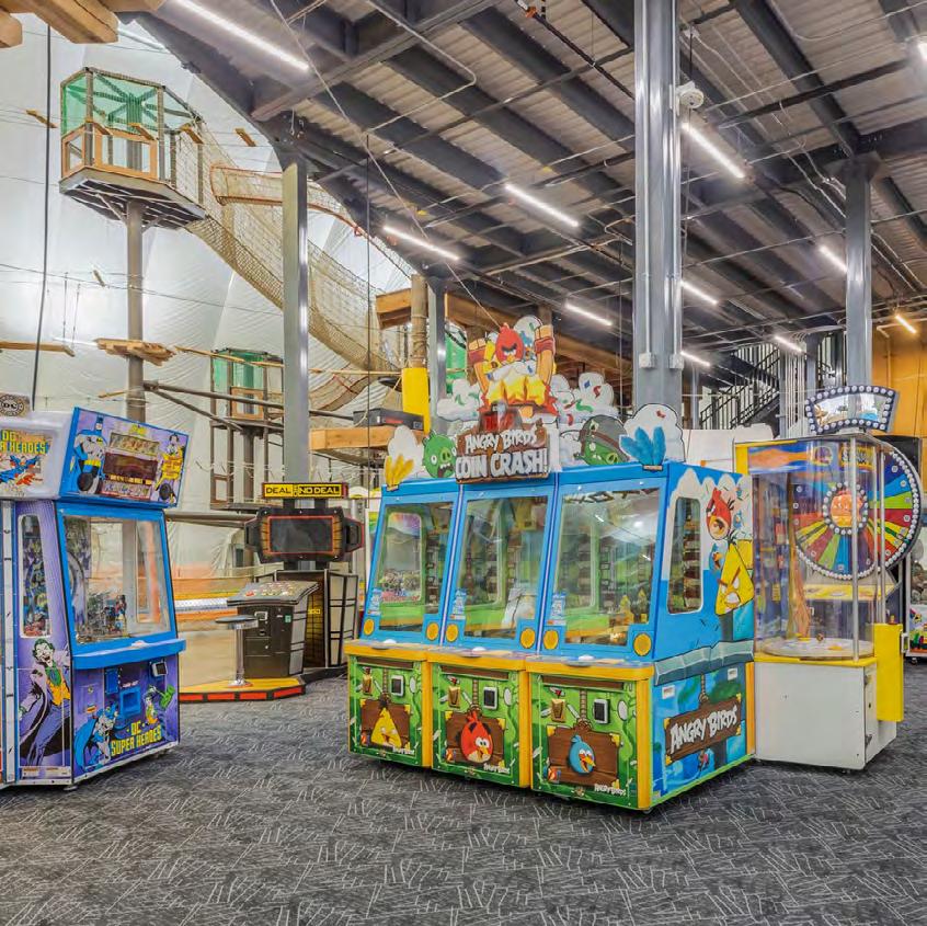 Adventure Park Bolder Adventure Park is an indoor adventure park located inside a 66,000 square foot air supported dome with 75 foot tall ceilings. Bolder is NOW OPEN and has a one-of-a-kind set of attractions including Synthetic Ice Skating, Exploration Playground, Tree-house Adventure Nets, Spin Zone Bumper Cars, Blaster Zone Arena with paint-ball guns, Tubing Slides, Ropes Courses, Rock Climbing, Climbing attractions, Free Fall experiences with Quick Flight and Flight Line from Headrush technologies, and two Via Ferrata courses.