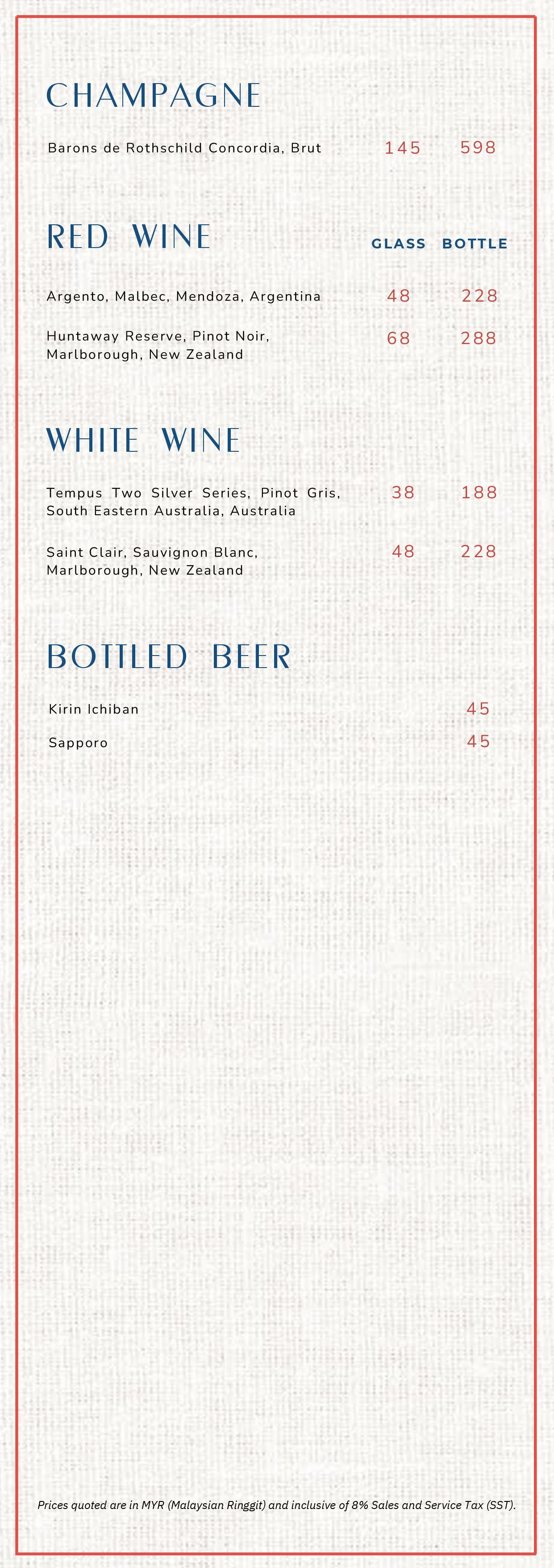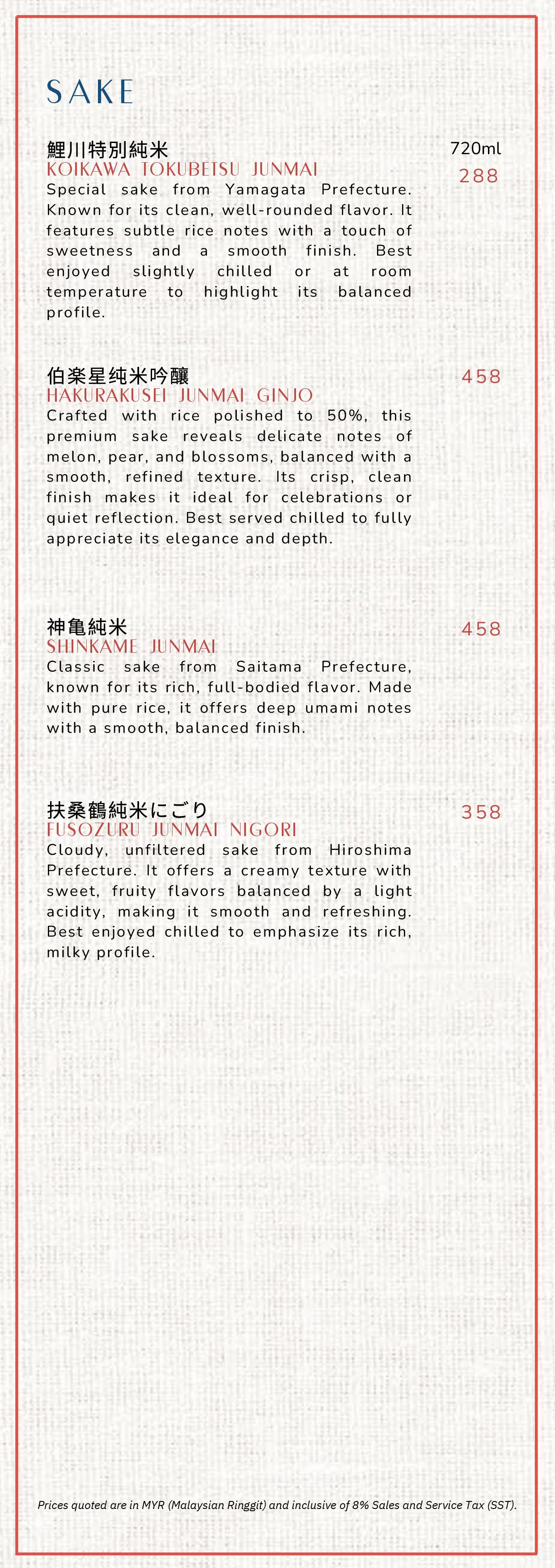 Menu: Azabu Omakase Beverage Menu