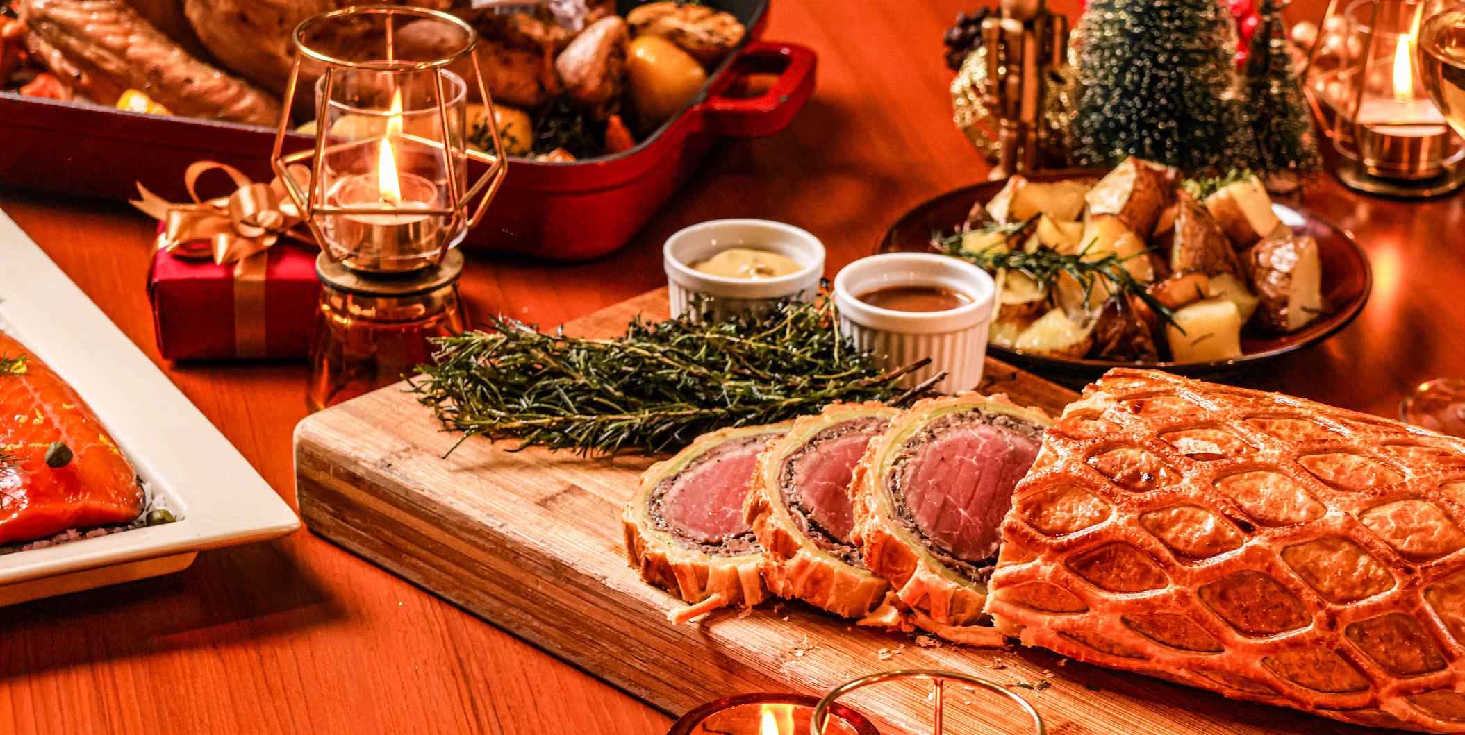 Enjoy bold flavors from the grill and wok, featuring short ribs, salt and pepper tiger prawns, and peri peri chicken. End on a sweet note with Mont Blanc, tiramisu, peppermint chocolate soft serve, and flowing chocolate fondue. With live stations, carving counters, and global dishes, it’s a festive feast full of flavor and cheer.