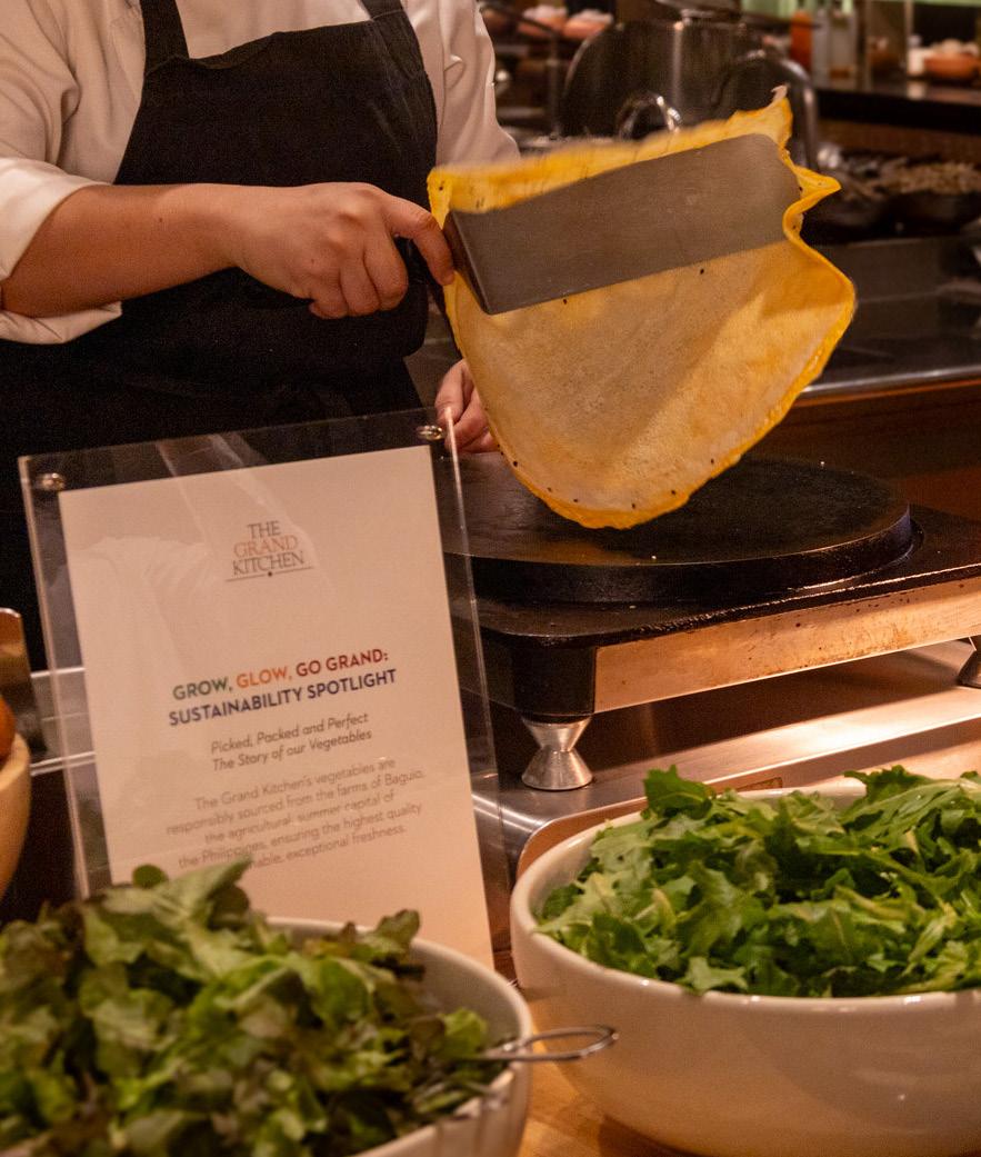 The intent is the hallmark of The Grand Kitchen’s commitment to sustainability. Ingredients are thoughtfully sourced, favoring local purveyors who share a vision of responsible farming and ethical production. The eggs on your plate? Cage-free. The seafood selection? Responsibly and freshly caught. The lettuce is hydroponic and sourced from a partner farm in Batangas, honoring the sustainable production behind nature’s produce.